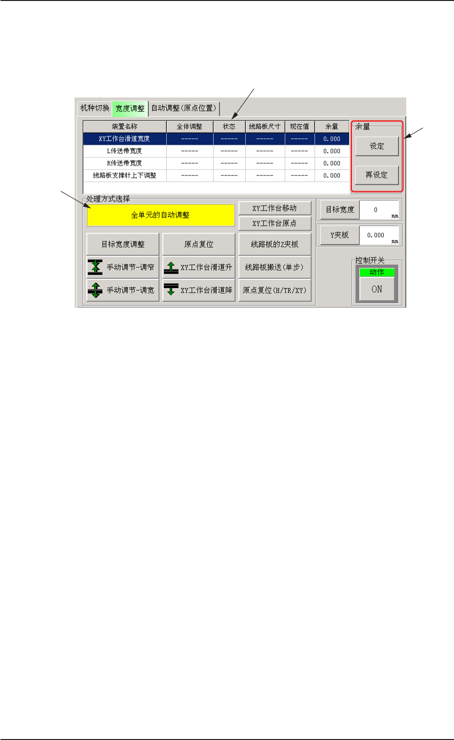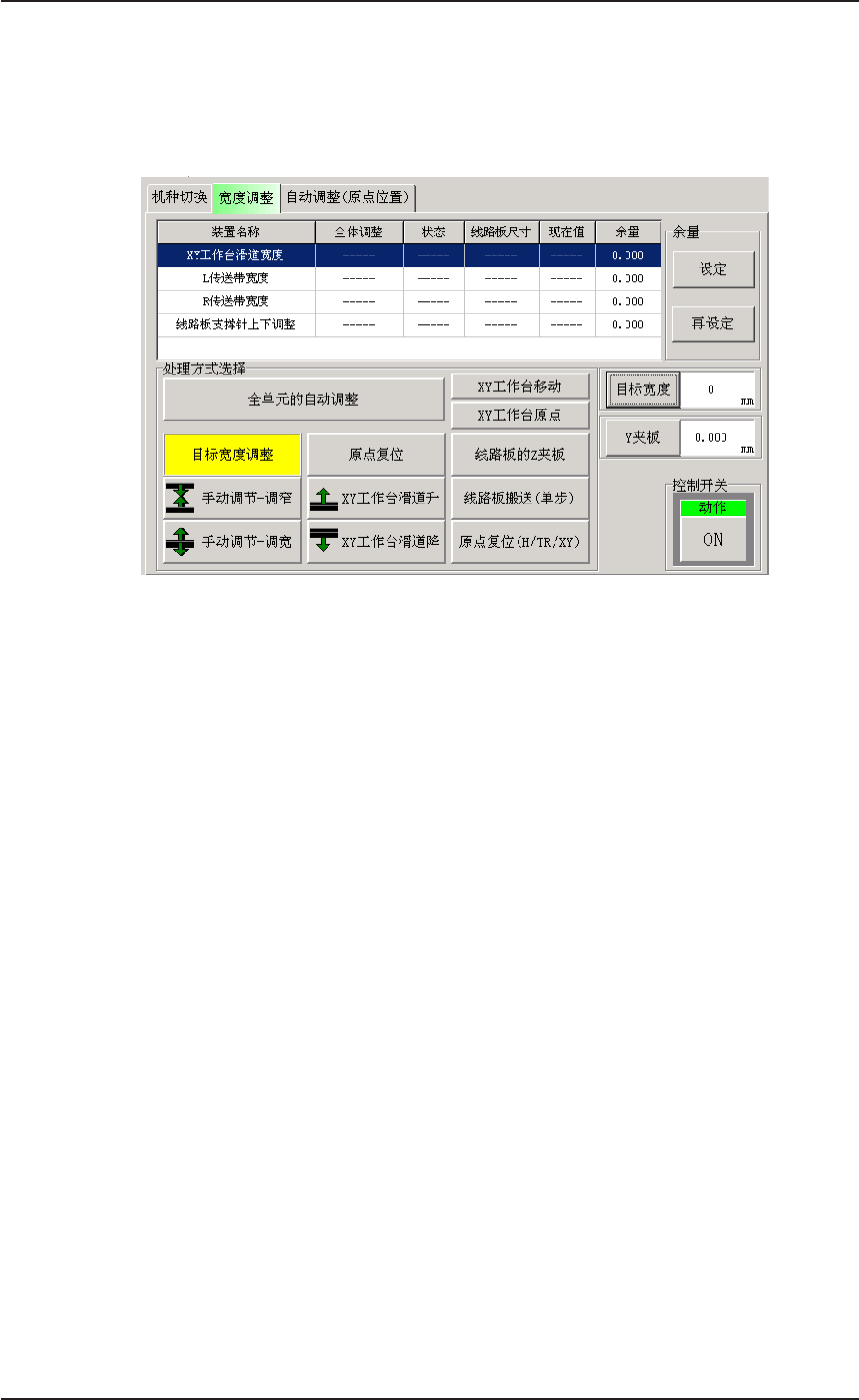 执行 XY 工作台滑道宽度、L/R 传送带宽度的宽度调整时,请按以下