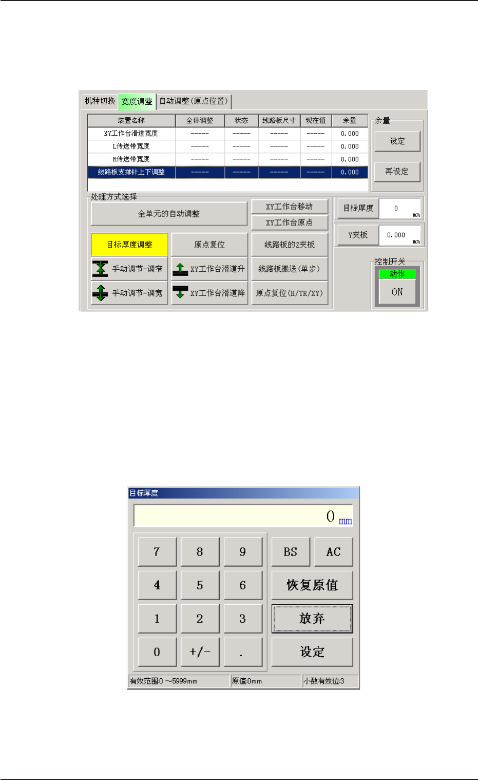 (3) 按下[ 目标厚度] 按钮,显示 “ 目标厚度 ” 编辑界面后,输入目
