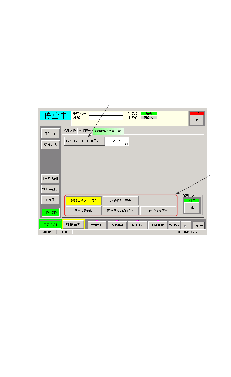 “ 自动调整( 原点位置) ” 选项卡根据不同机种,显示的界面也有所