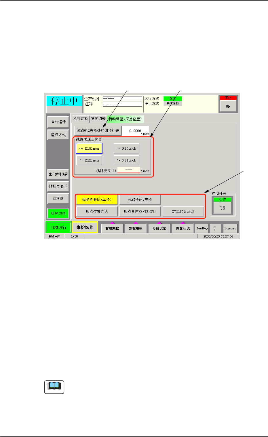 (1) 选择适当的线路板程序,进行 “ 机种切换 ” 和 “ 宽度调整 ” 。