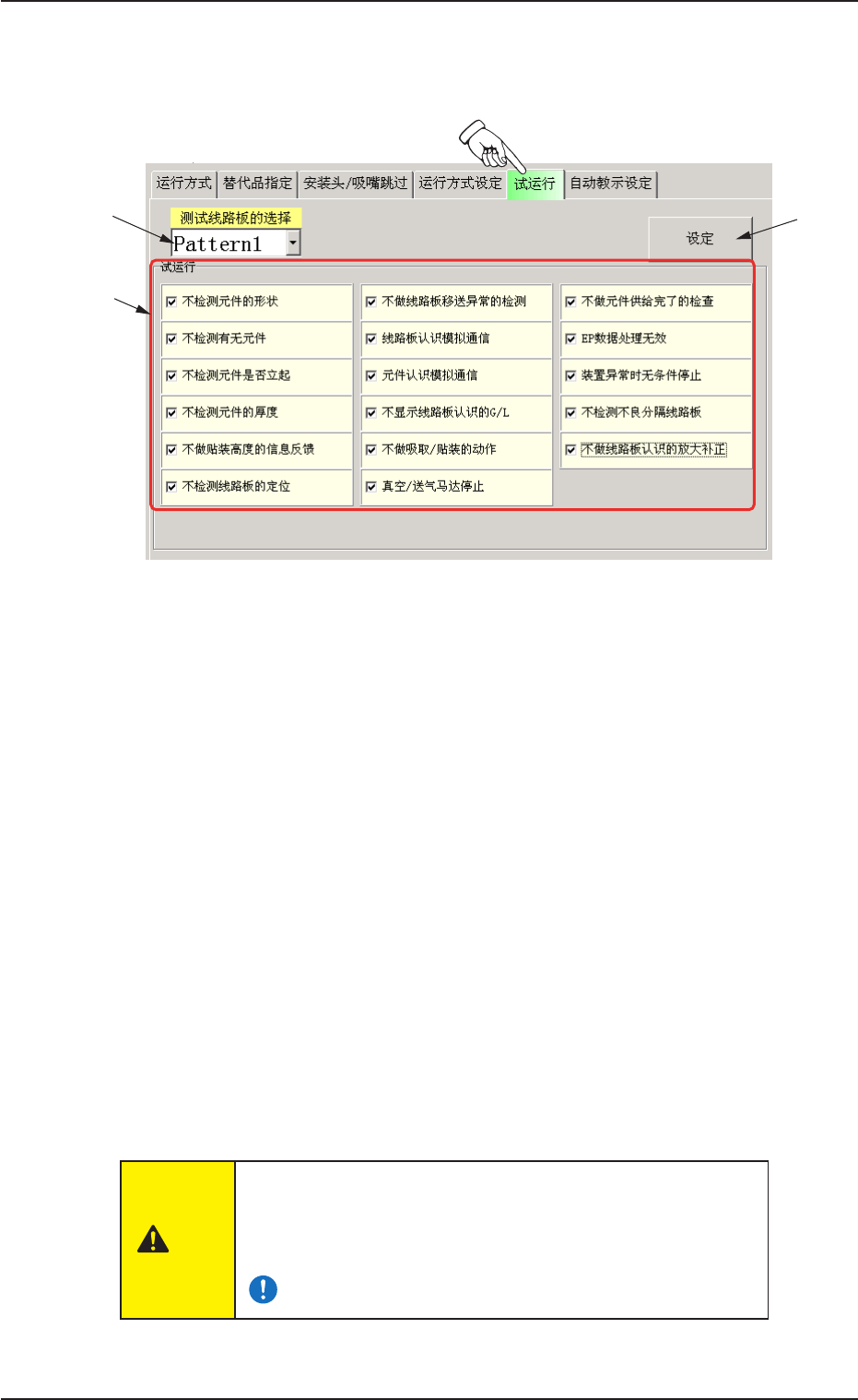 试运行设定。