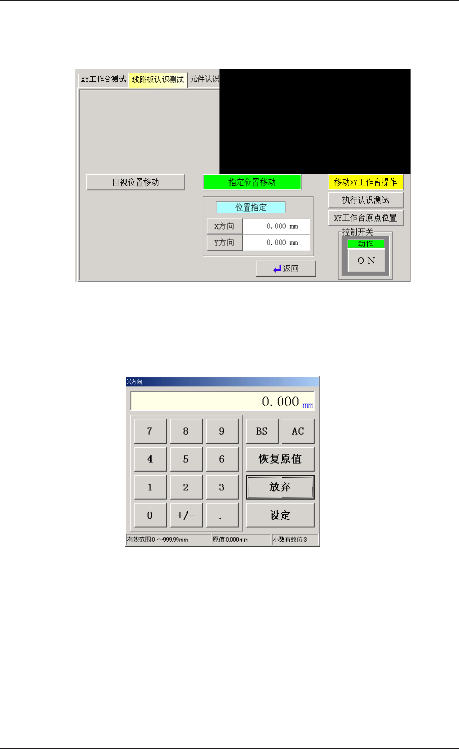 在该界面可输入 / 设定 XY 工作台在 X 方向上的移动位置指定。