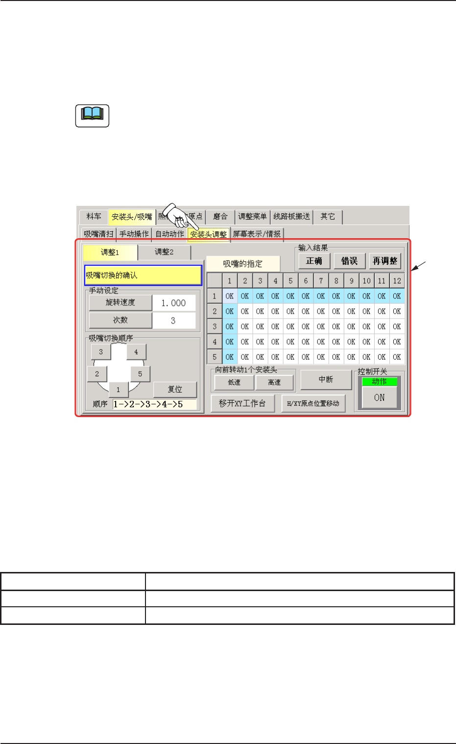 1 确认吸嘴切换动作时使用。
