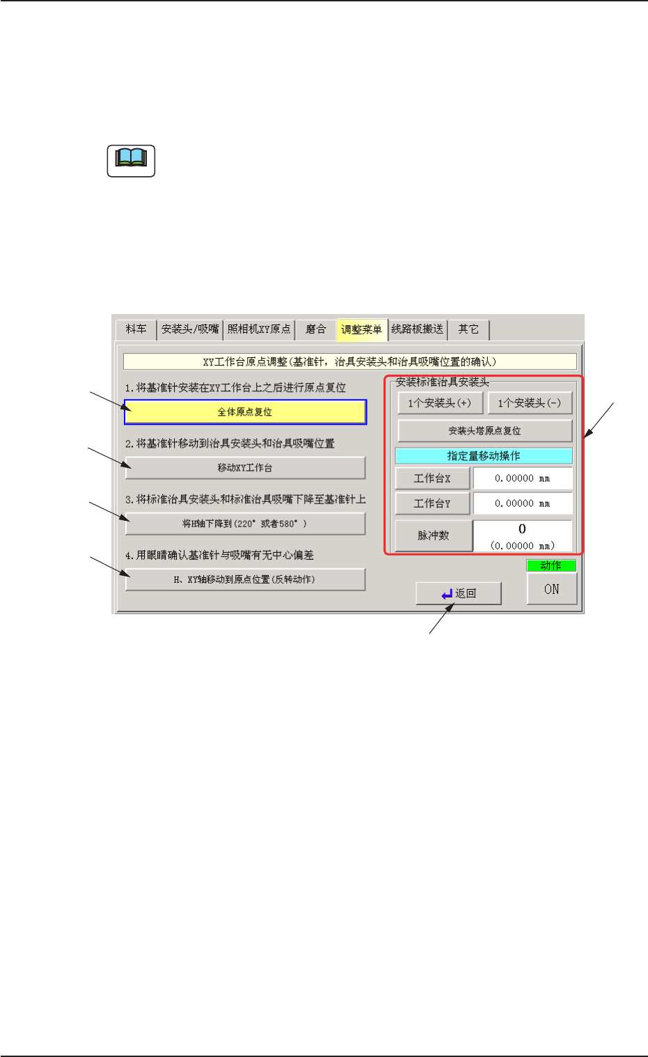 使用基准针冶具和标准安装头,确认 XY 工作台的原点补正值。( 只