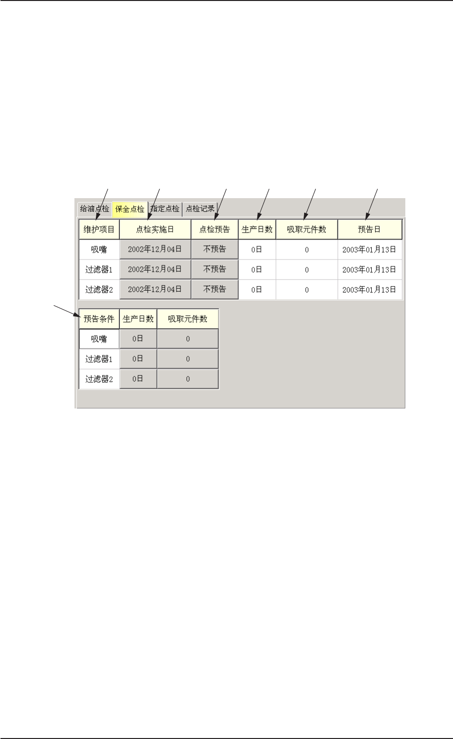 元件数) ” → “0 ”、“预告日 ” → “ 点检实施日 + 点检周期 ” 等
