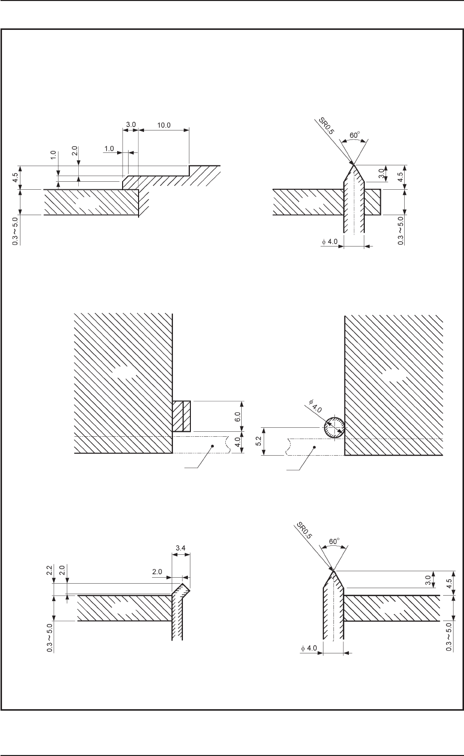 • 障碍物( 参照各部截面图) 到吸取吸嘴或是元件的接近界限的最小距离定到 “ 0.5mm”