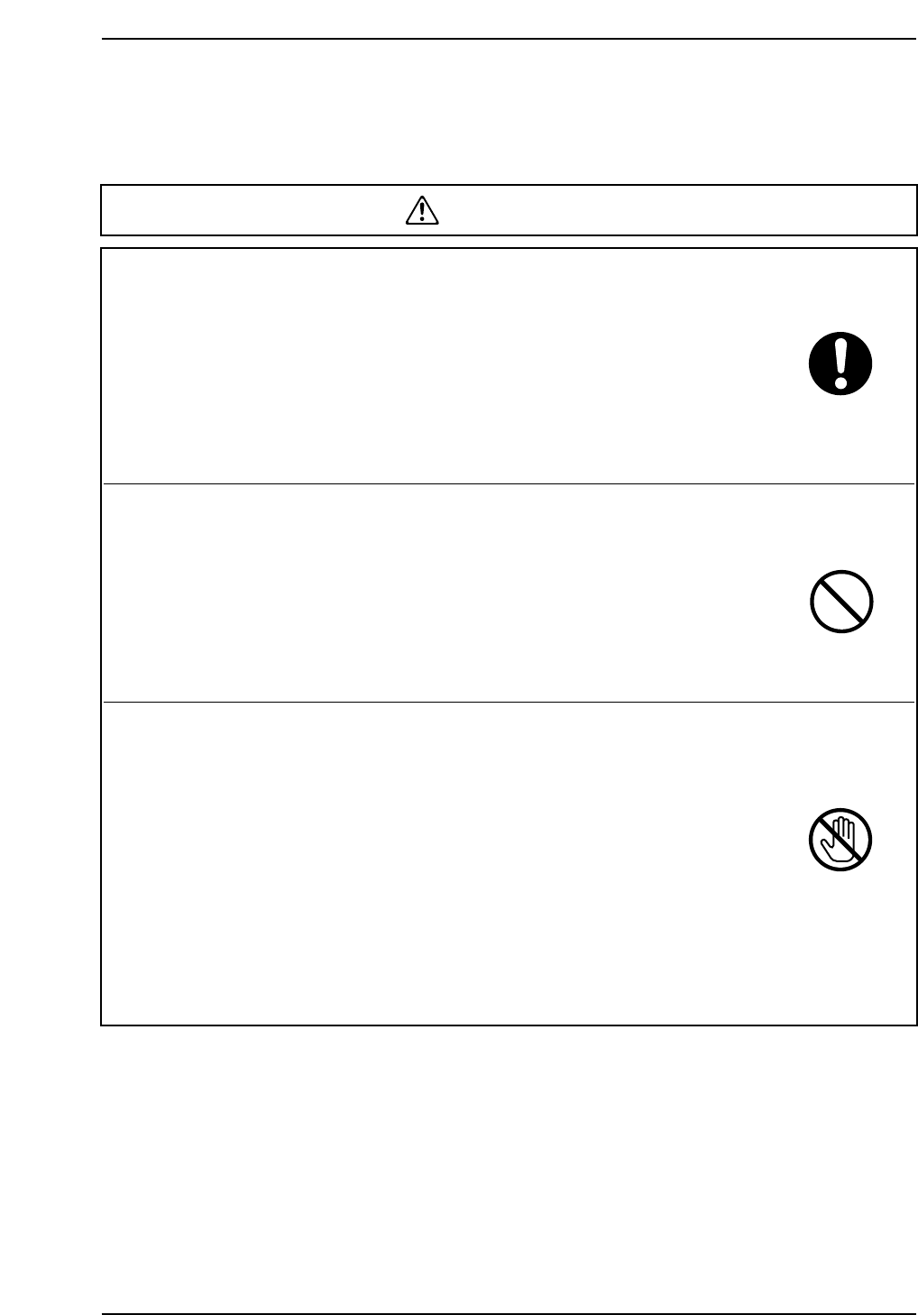 operation that is prohibited. The symbol inside the circle indicates the nature