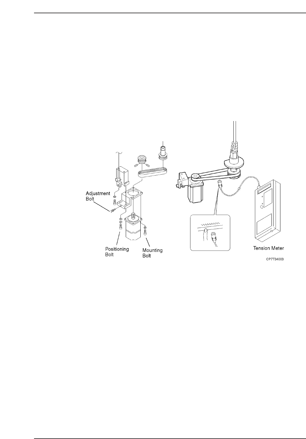 3. Replace the timing belt and adjust the tension as shown above according