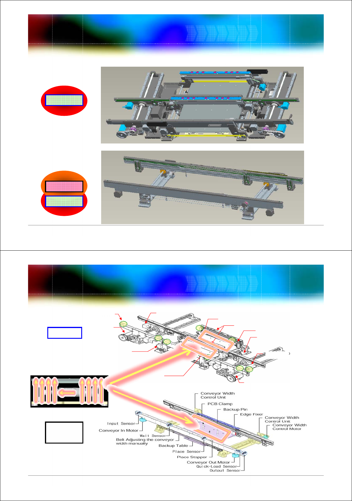 19 Conveyor Conveyor 4mm height 4mm height Back up pin Back up pin Back up table Back up table Edge fixer Edge fixer • PCB Clamping 20 Conveyor Conveyor • SM411(F) Depends on the installation position of the PCB …