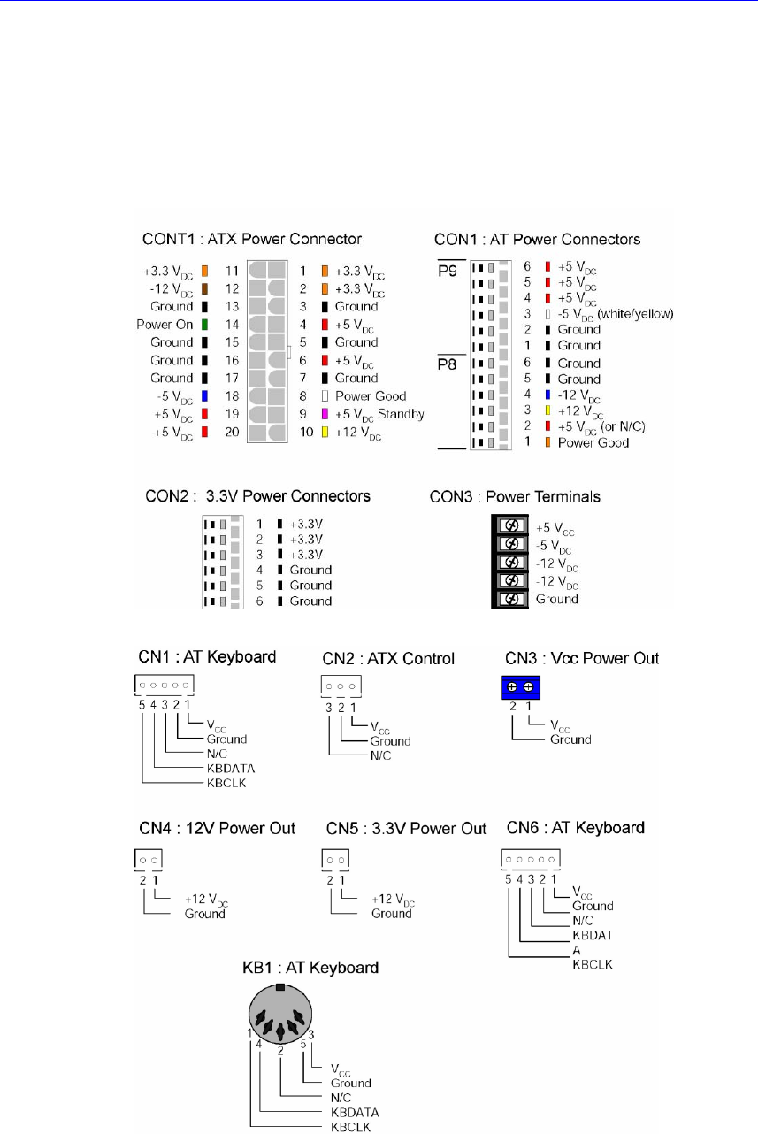20 pin ATX connector, standard AT connector, 5-pin terminal block