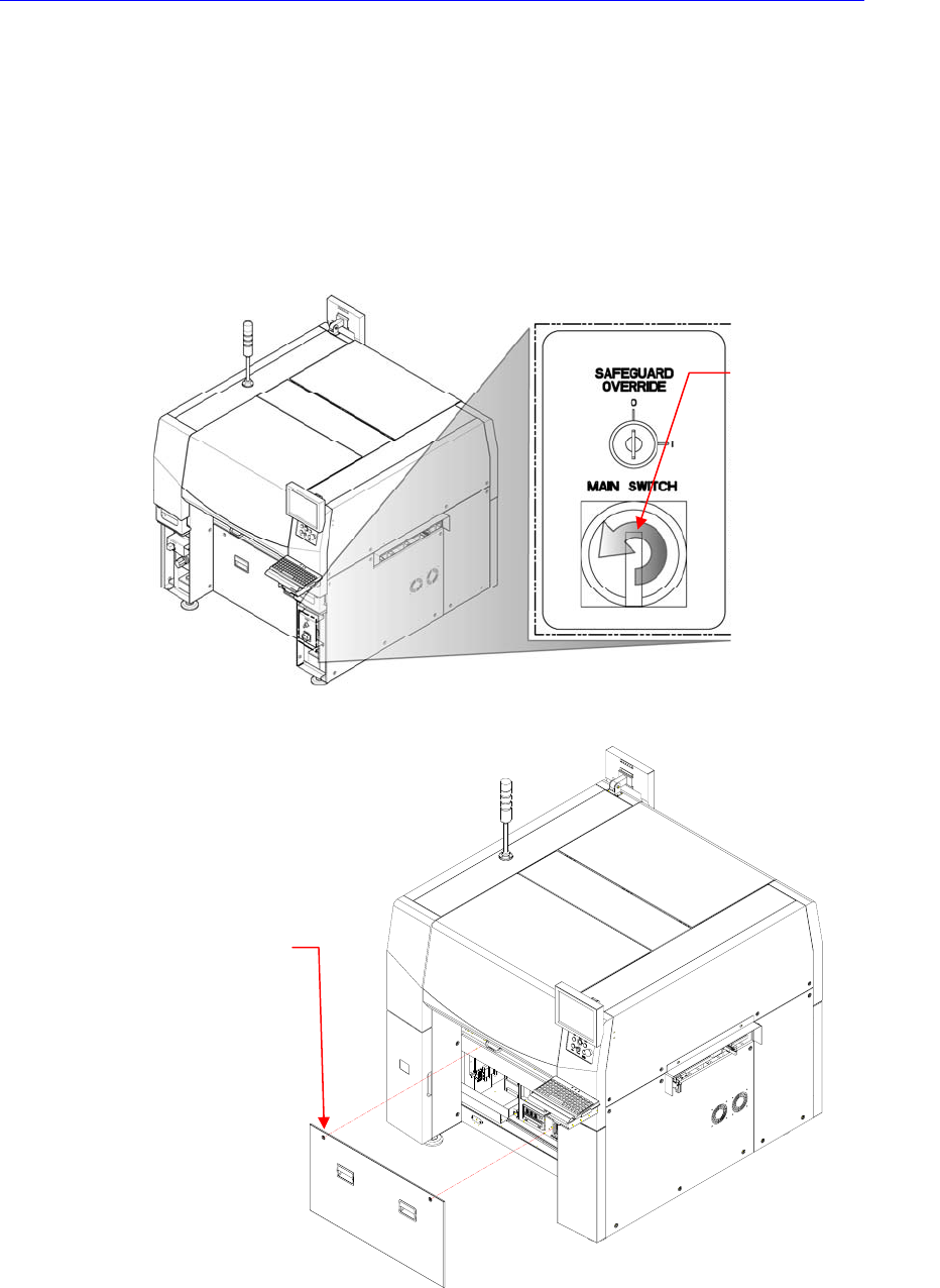 6. Turn on the main switch on the front side of the machine and manipulate the