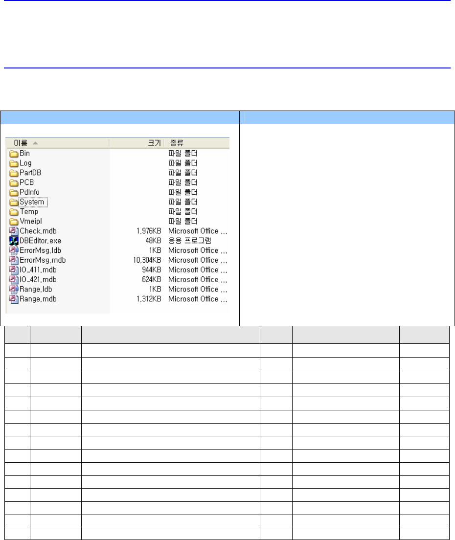 SW & Control Part Chapter 1. Sof tware █ SM400 S/W file structure Path Contents C:₩SmartSM SmartSM) - DBEditor.exe : mdb(DB) edit file - ErrorMsg.mdb : Error Code and its message Database file - Range.mdb : Item별 Min…