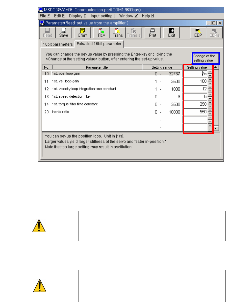 change the parameter in the <Setting value> combo box and click <Change of the
