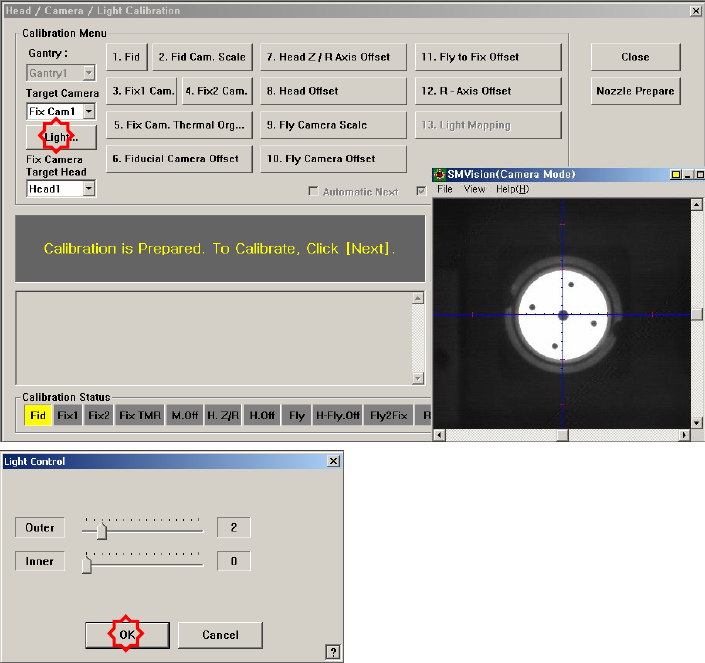 brightness of the light in the ‘Light Control’ dialog box so that the fiducial