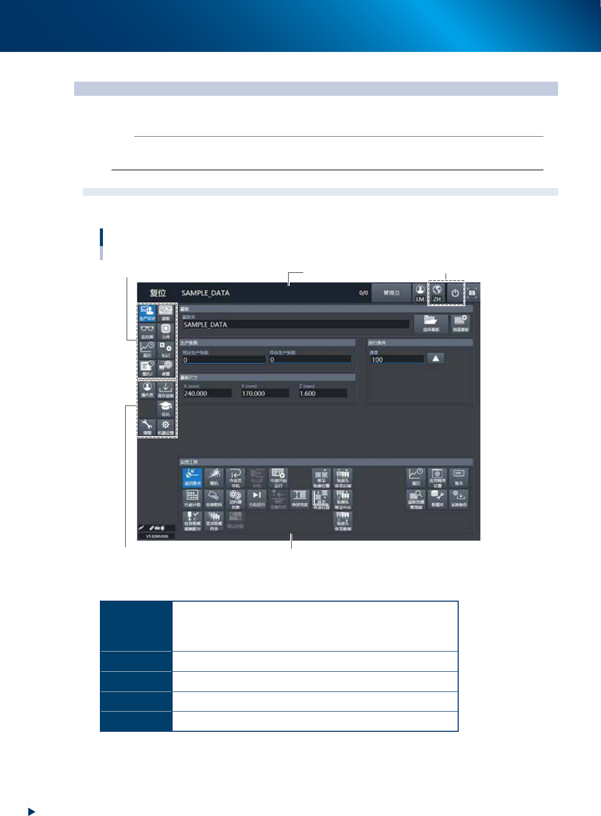 按钮区 1 可选择主要的操作菜单。随所选按钮,“自由区”的画面内容自动切换。
