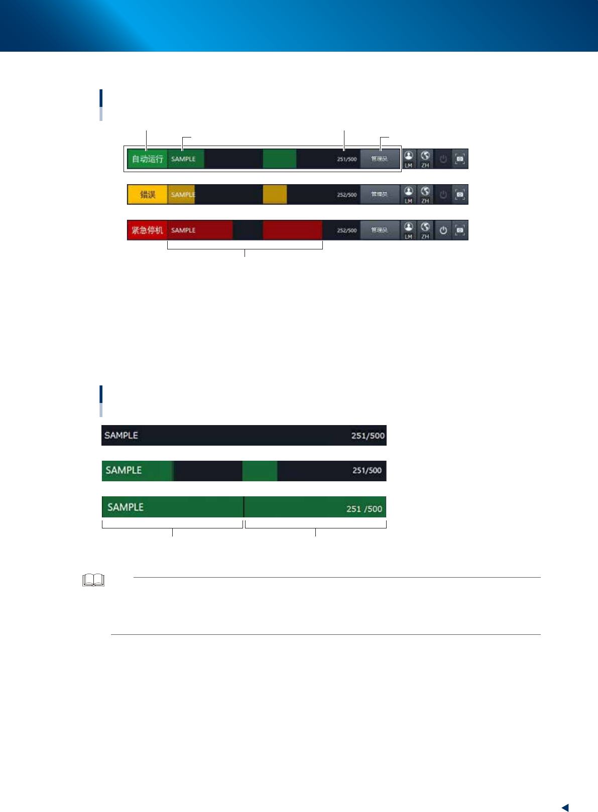 从左按顺序显示当前的贴片机状态 ( 自动运行、错误、紧急停机等 ),