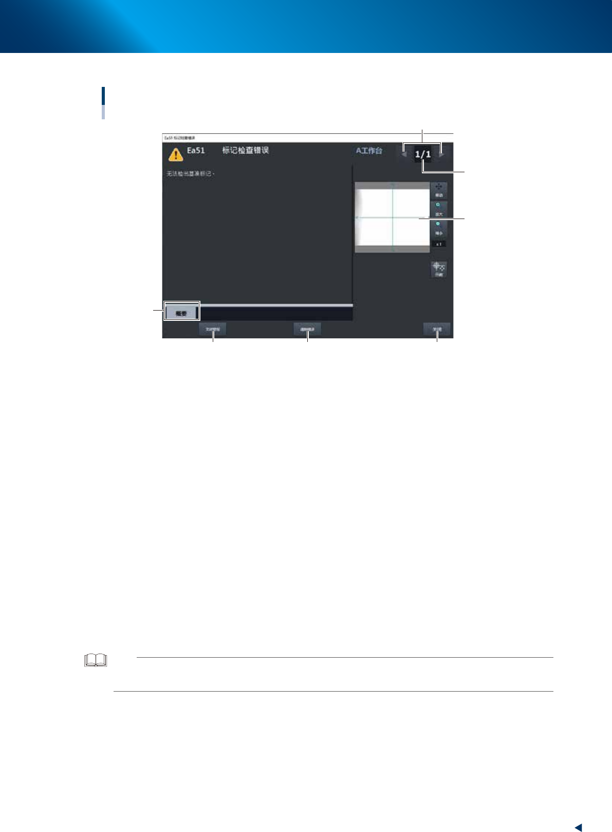 显示当前的错误和错误总数。发生多个错误时,按左右的错误切换按钮,切换到其它错误画面。