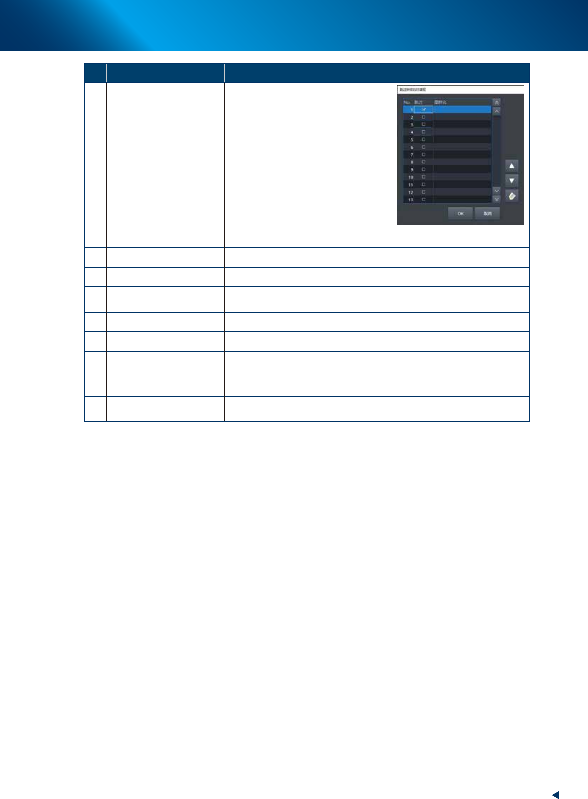 11 传送宽度 调节传送宽度。与 [ 装置 ] -“传送装置”画面的 [ 传送宽度 ] 按钮相同。