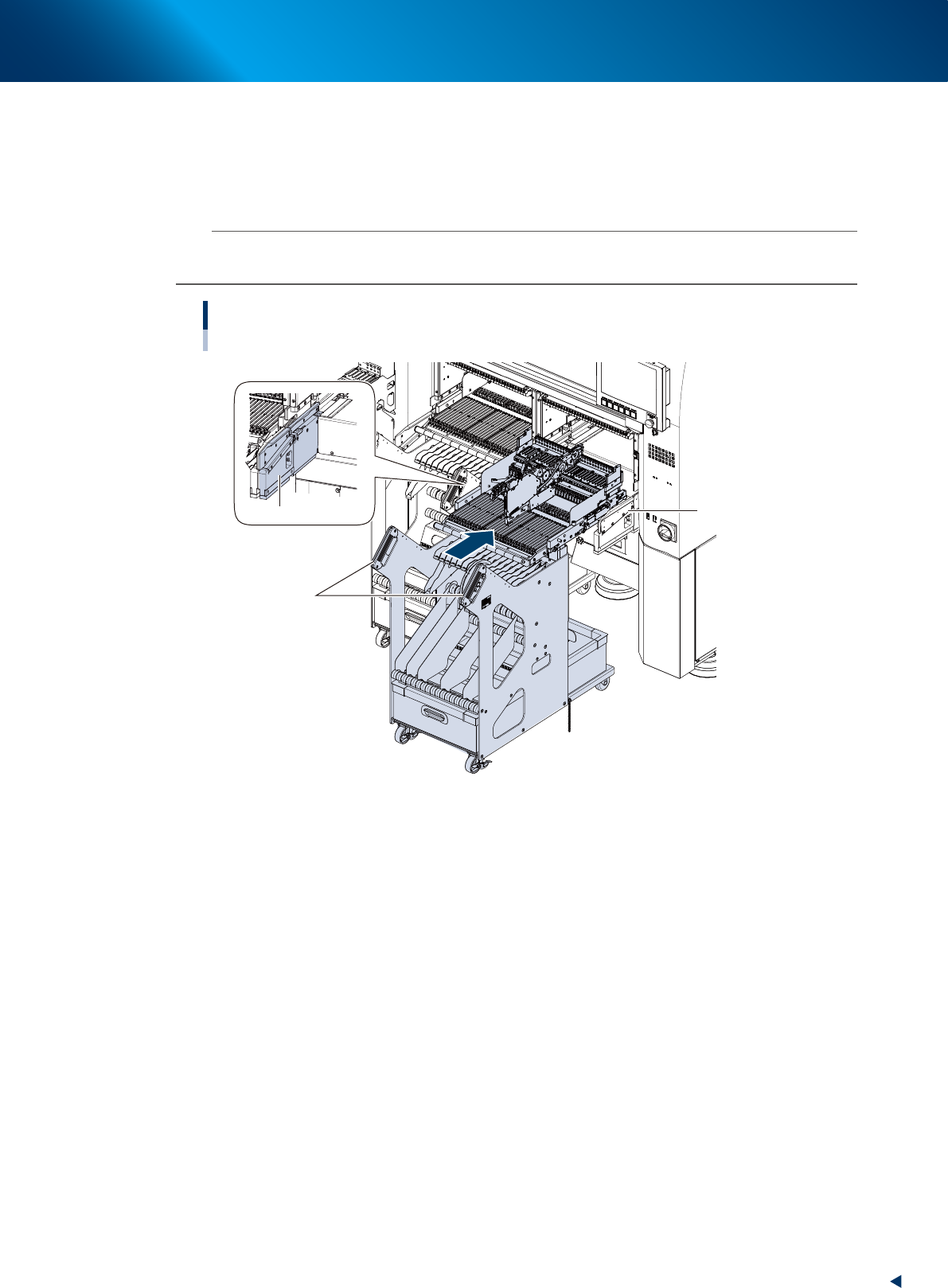 2. 双手把住料车的把手,将料车沿料车导轨笔直推入贴片机的安装位置中。