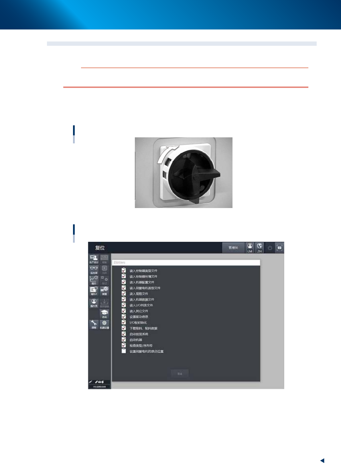 向右转动贴片机正面右下方的电源主控开关至 ON,接通电源。系统启动,显示“正在初始化”画面并