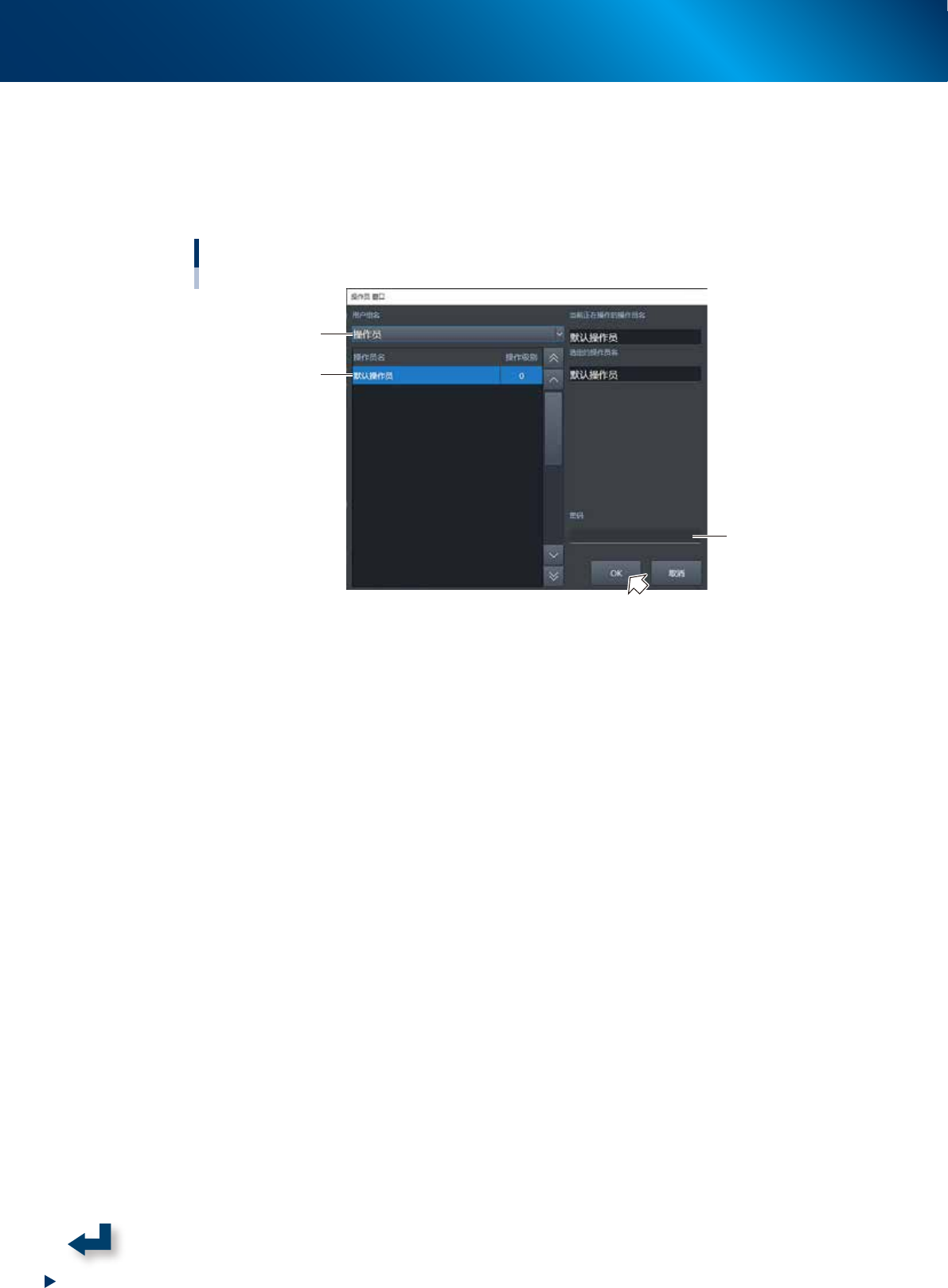 选择操作本机的操作人员。本机可预先登录操作员名与操作权限 ( 根据需要设置密码 ),通过变更操作员可变