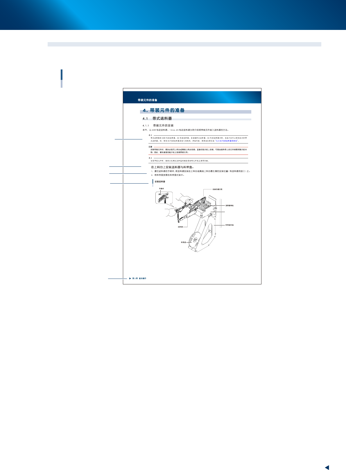 介绍将元件安装在带式送料器与将带式送料器安装在贴片机上的方法。