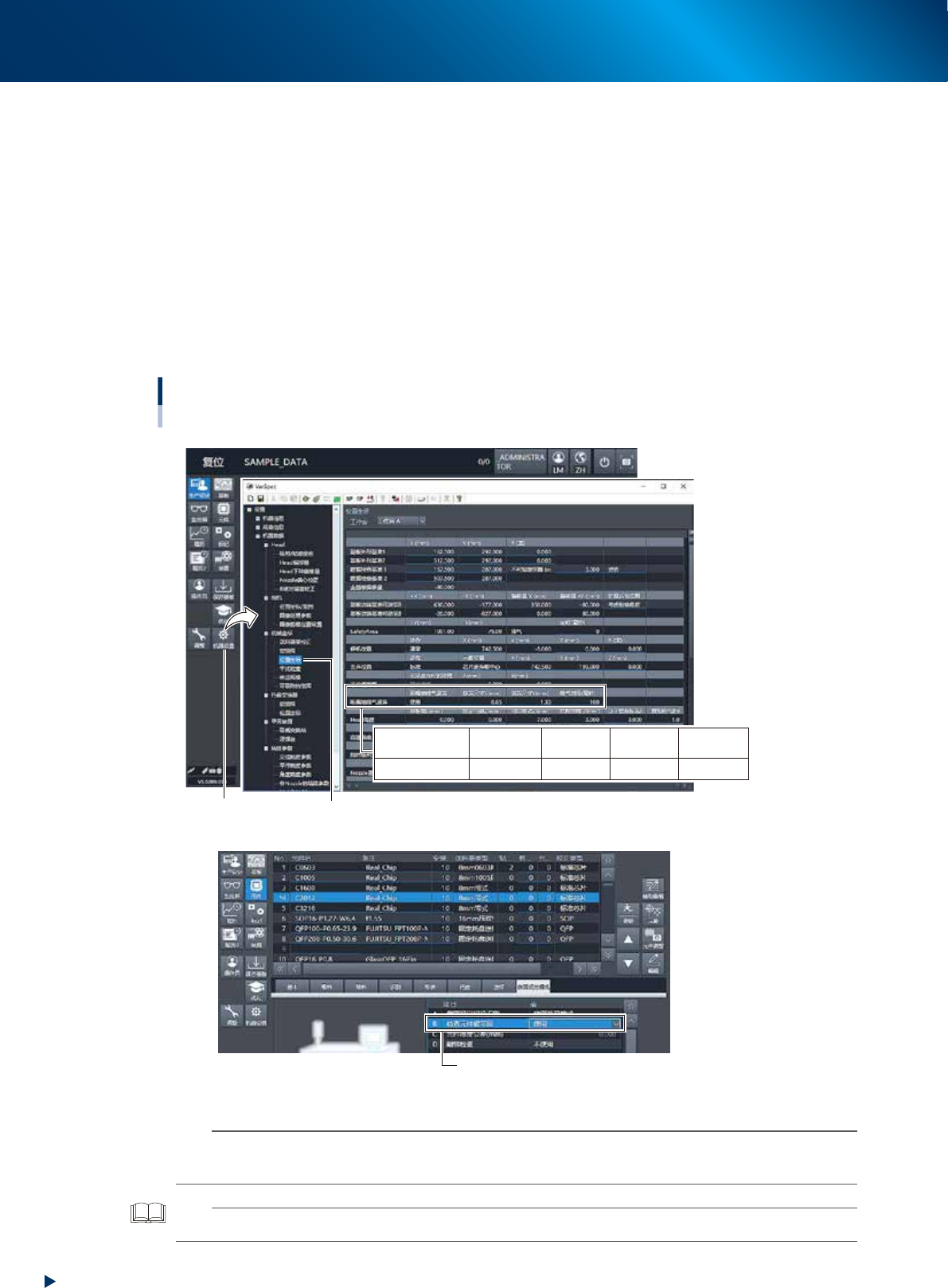 3. 贴装头单元 1-29 第 1 章 各部的名称与功能 3 设置自动进行吸嘴轴排气。 1. 从“检查项目”下拉框中选择“吸嘴轴排气” 。 2. 勾选“执行检查”的选择框。 3. 配备吸嘴交换站 ( 选配 ) 时,从下部列表中选择自动进行吸嘴轴排气的对象吸嘴。 将“吸嘴类型”选择为“全部吸嘴”或“仅限在用的吸嘴” 。 设置自动进行吸嘴轴排气 “计划规格”画面 4. 设置“执行条件”与“周期条件” 1. 选择“吸嘴轴排气” 2. 勾选“执…