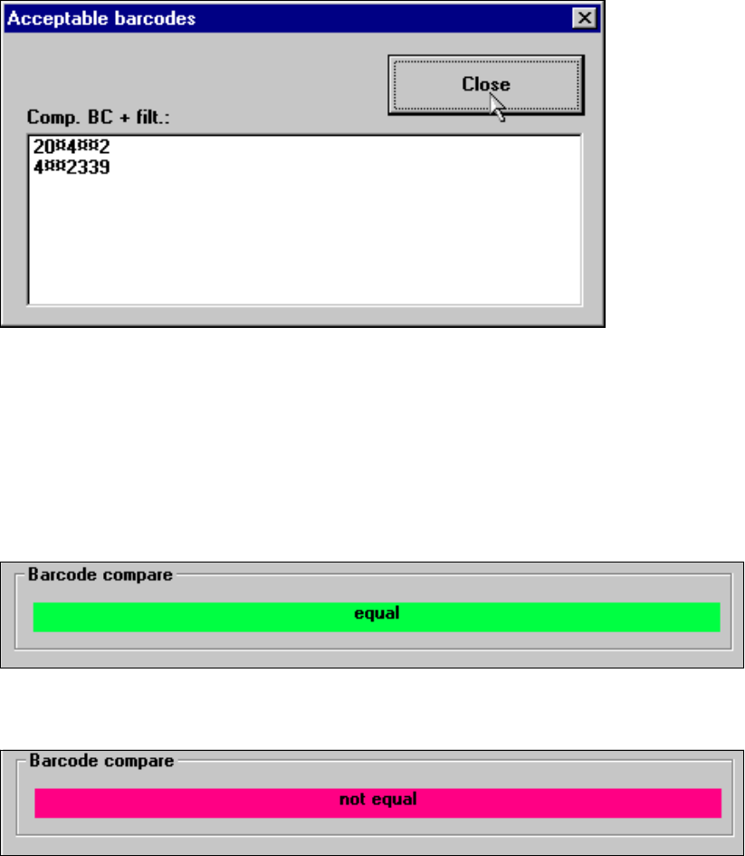 Vöötkoodide võrdlemisel saadud tulemused kuvatakse väljal "Component verification with