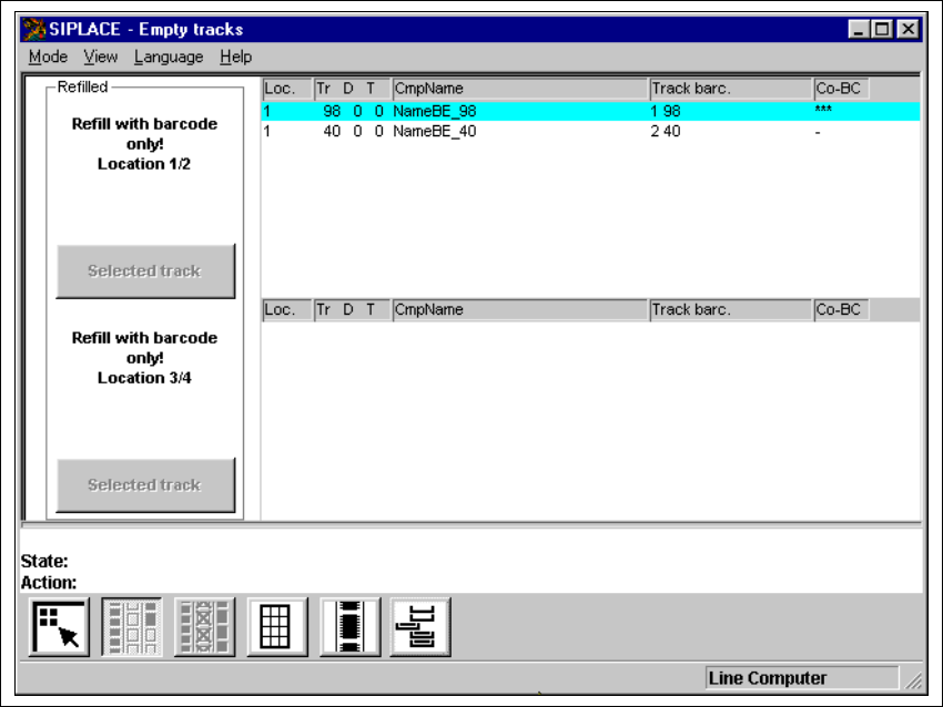 Joon. 4.3 - 2 "Empty tracks" kuva, kui "Component verification with barcode" suvand on aktiivne