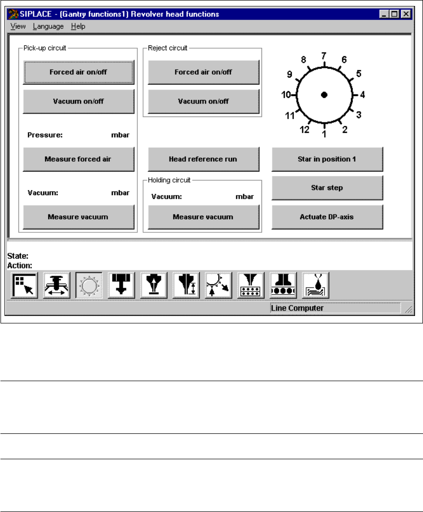 Kasutusjuhend SIPLA CE F5/F5 HM 5 Üksikfunktsioonid Tarkvara versioon SR .407.xx 01/2001 EE väljaanne 5.2 Üksikfunktsi oonid, portaal 175 5 Joon. 5.2 - 2 Revolverpea funktsioonide kuva (12- imiotsakuga Collect&Place …