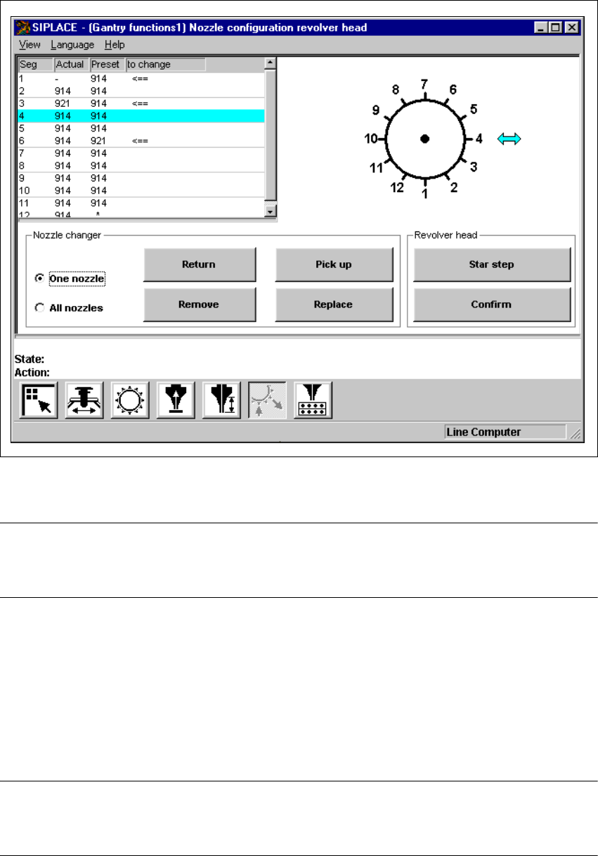 "Nozzle configuration revolver head" kuva võimaldab kasutada funktsioone, mille abil saab muuta
