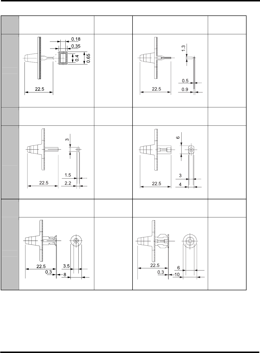 CM602-L 参考手册 1.4 其它规格 Pa ge 1- 33  通用吸头 (8 吸嘴 ) 的吸嘴布局 对应 12 mm × 12 mm 以下部品的小型吸嘴 ( 如上页所示的 110 、 115A 、 120 、 130 、 140 、 205 、 206A 、 225C 、 226C 、 230C 、 235C 、 240C 、 185 、 199) 可安装在所有的吸头 上。 对应超过 12 mm × 12 mm 的大型吸嘴 (…