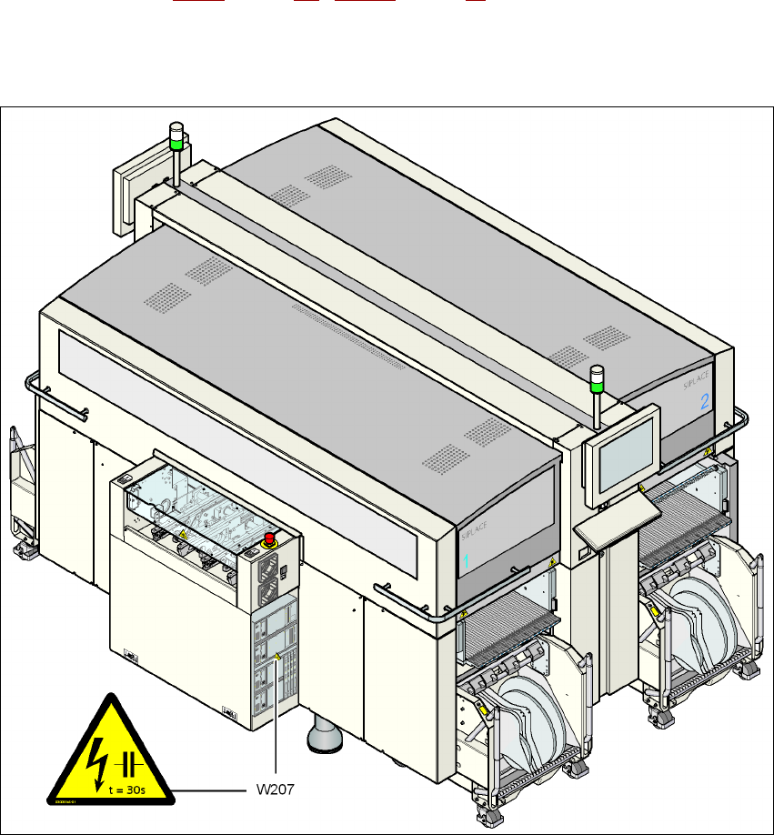 Manuale per l'uso SIPLACE serie X Sicurezza d'esercizio A partire dalla versione software SR.70x.xx Edizione 01/2011 Cartelli di avvertenza 55 2.2.4.5 Cartello di avvertenza W207 nella limit azione della corren…