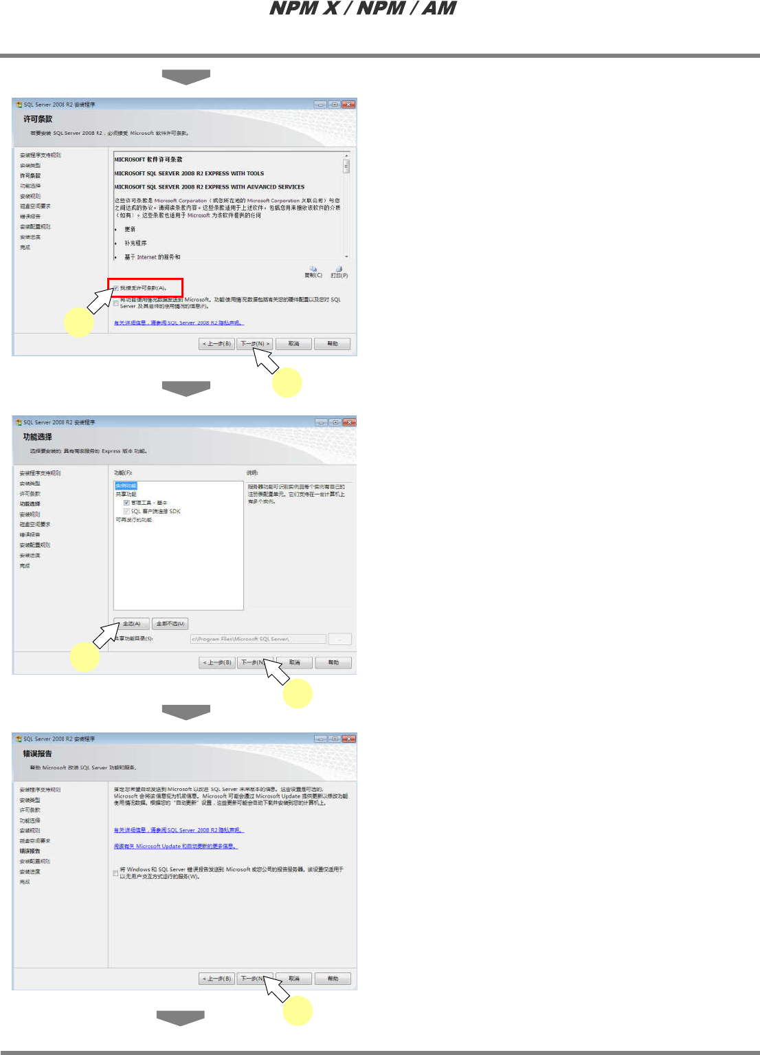 LNB 2.7 品质信息数据库的安装 EJM5DC-MB-02L-10 Page 2-73 2. SQL Server Manageme nt Studio Express 的安装 1 启动 ‘SQ L Server Management Studio Express’ 的安装程序。 2 点击菜单 [ 安装 ] 的 [ 全新安装或向现 有安装添加功能 ] 。 3 选择 [ 全新安装或者添加共享功能 ] 后, 点击 [ 下一步 ] 。 2…