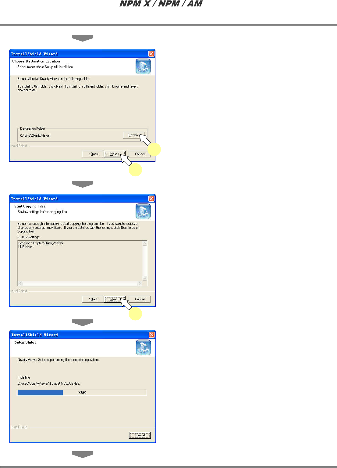 LNB 2.7 品质信息数据库的安装 Page 2-84 EJM5DC-MB-02L-10 · 将显示选择安装目的地 的画面。 14 指定安装目的地文件夹后, 点击 [Next] 。 · 将显示设定内容的确认 画面。 15 确认所设定的内容后,点击 [Next ] 。 · 将开始复制文件。 2-5072 15 2-5073 2-5071 14 14