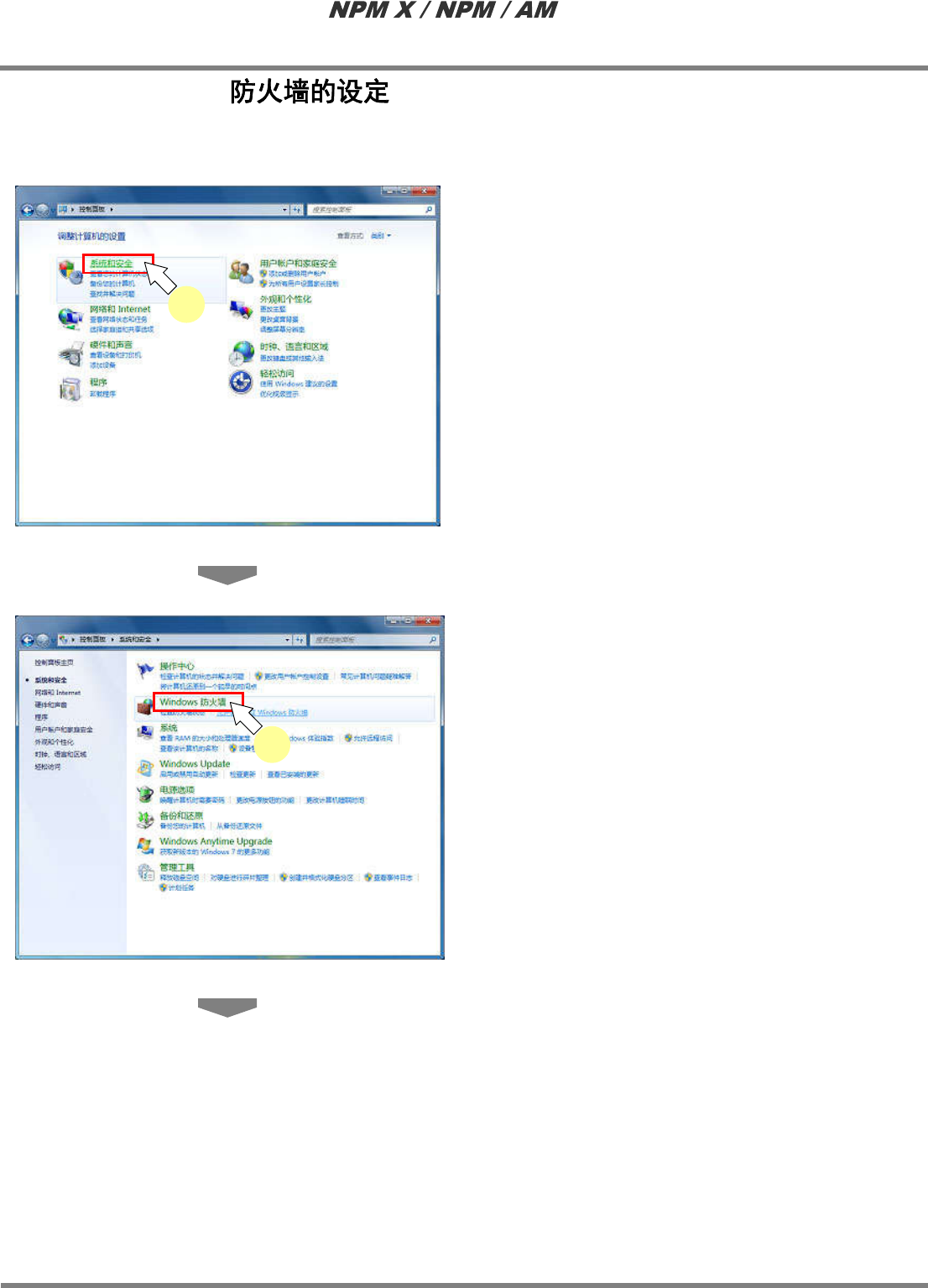 LNB 2.7 品质信息数据库的安装 Page 2-86 EJM5DC-MB-02L-10 2.7.3 Windows OS 是 Windows 7 Professi onal 或者是 Windows 8 Professional 的情况时, 请设定 [ 允许程序通过 Windows 防火墙 ] 。 1 打开 ‘ 控制面板 ’ ,点击 [ 系统和安全 ] 。 2 点击 [ 允许程序通过 Windows 防火墙 ] 。 2-5108 1 …