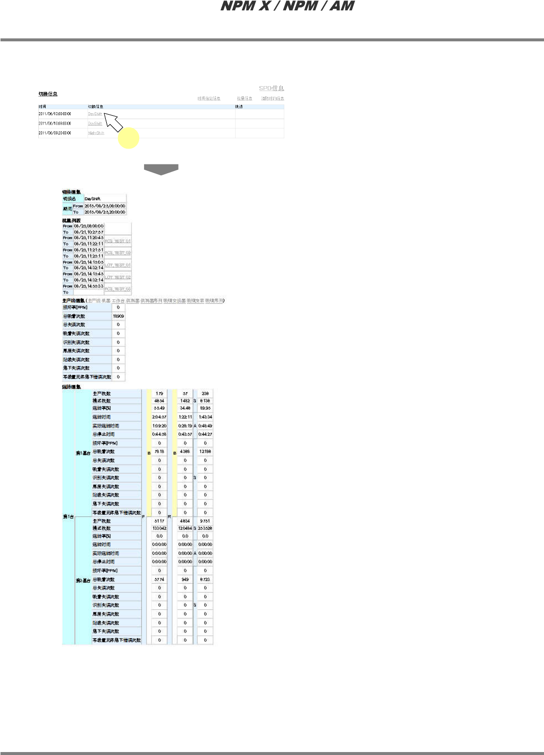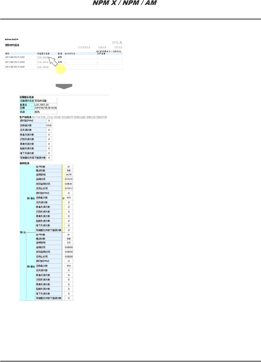 LNB 3.1 生产管理信息 Page 3-6 EJM5DC-MB-03L-09 D) 所显示的种类为 < 清除时信息 > 时 1 从批量信息中选择需要查看详细内容 的清除时信息。 · 将在其他窗口上显示所 选择信息的过去一周的 生产管理信息。 3-1005 3-1007 3-1005 1