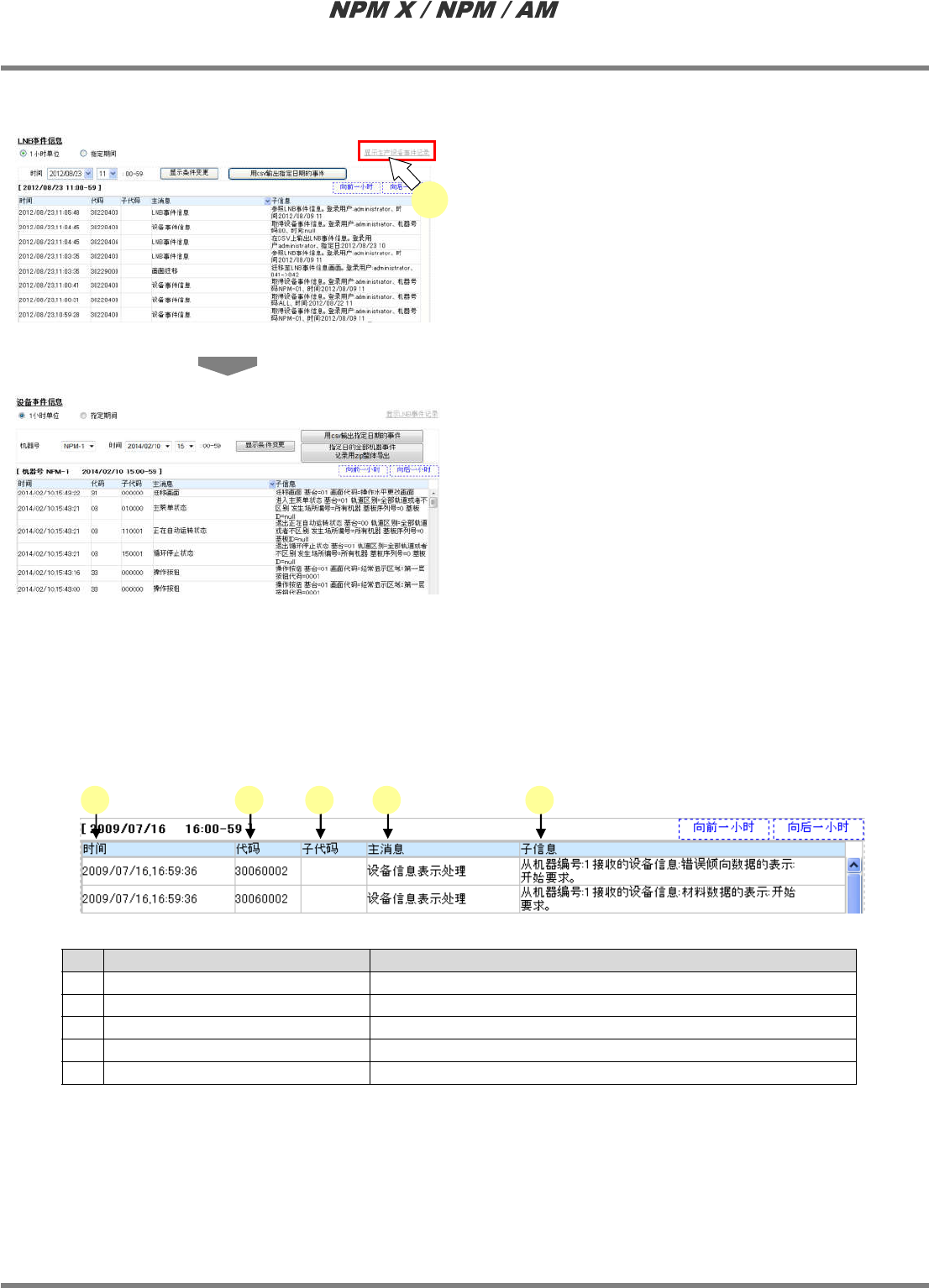 显示生产设备事件记录