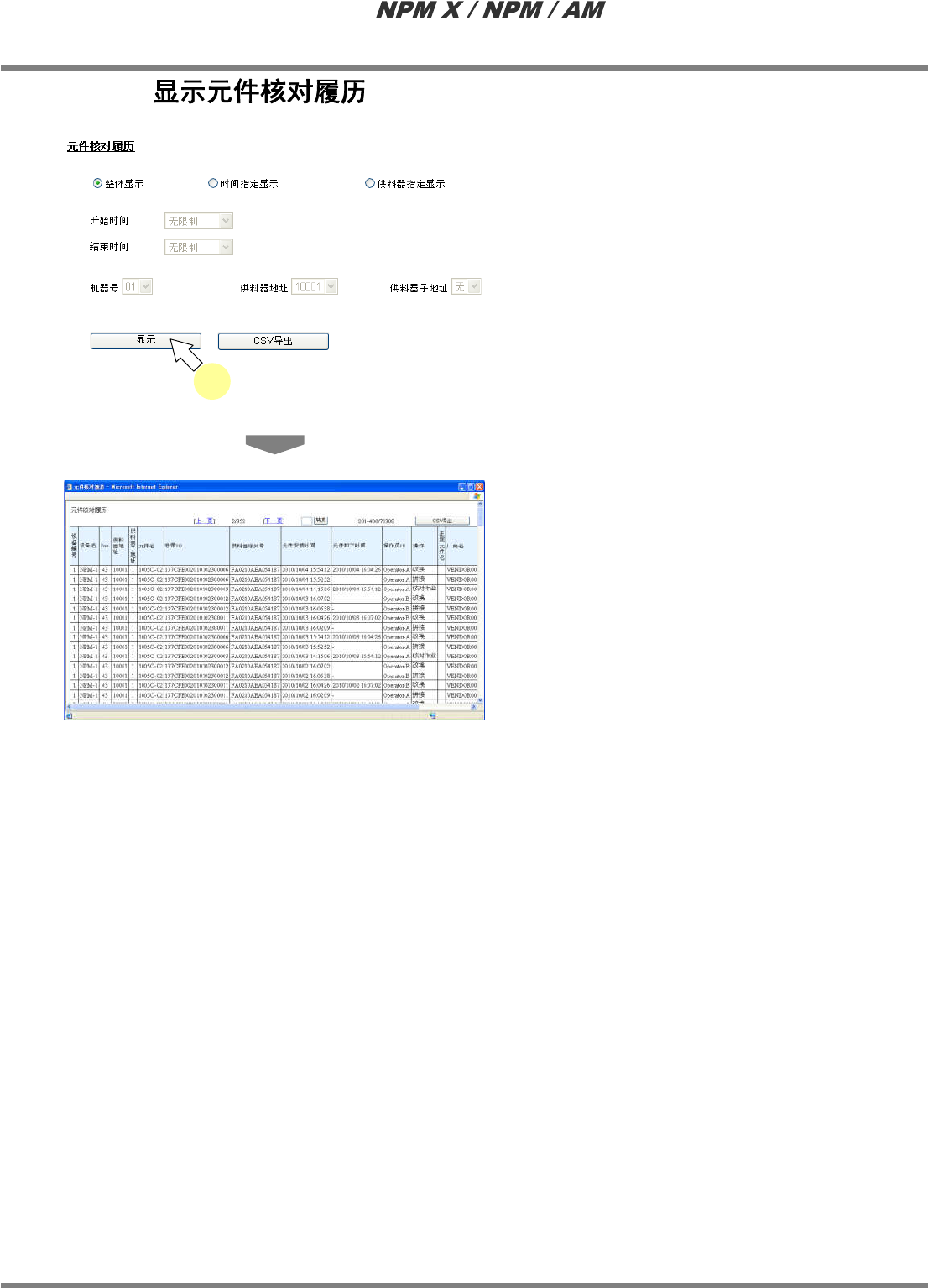 显示通过元件核对所输入的操作员