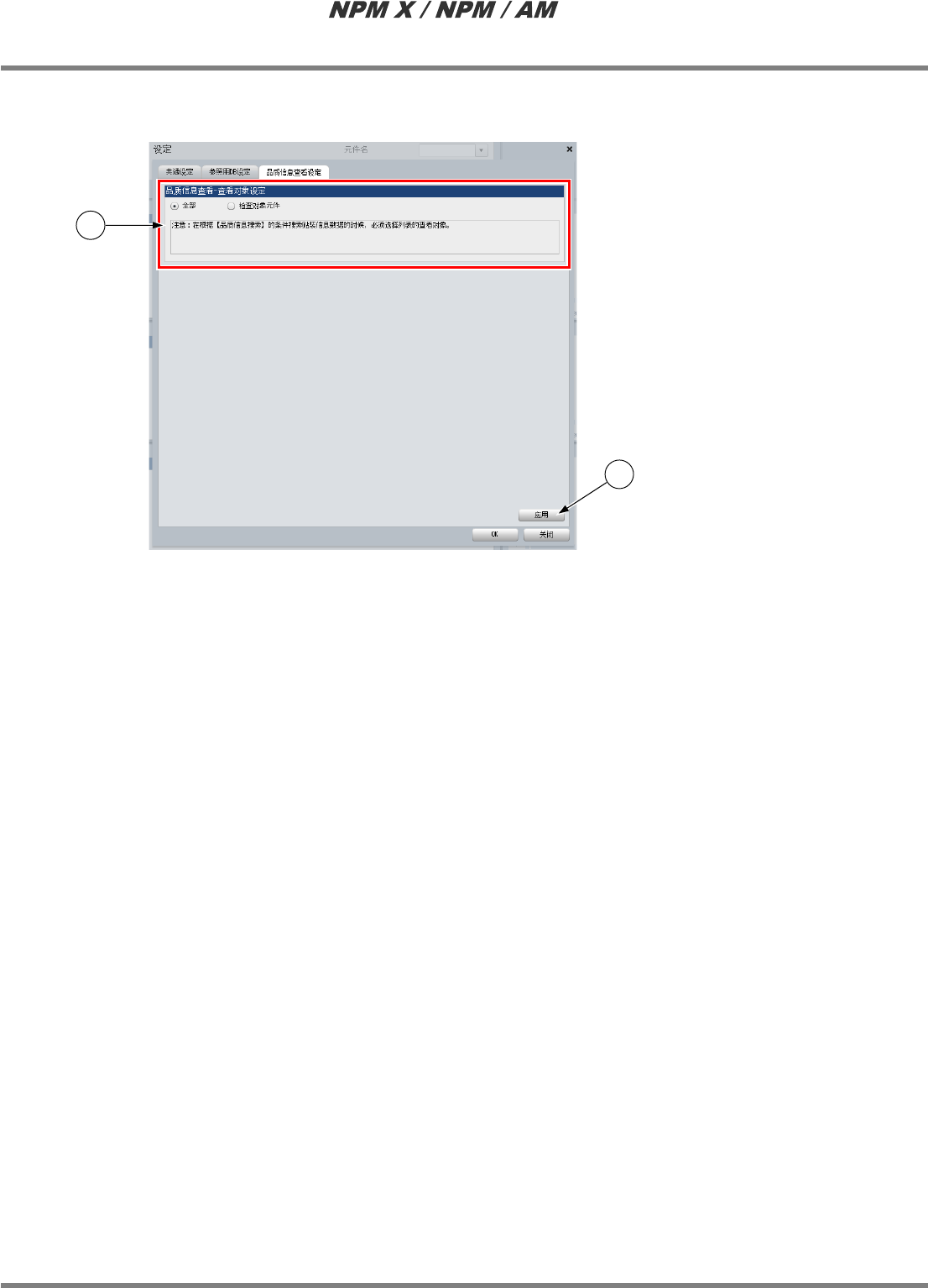 只将检查对象元件的品质信息数据显示在品质信息一览表时选择使用