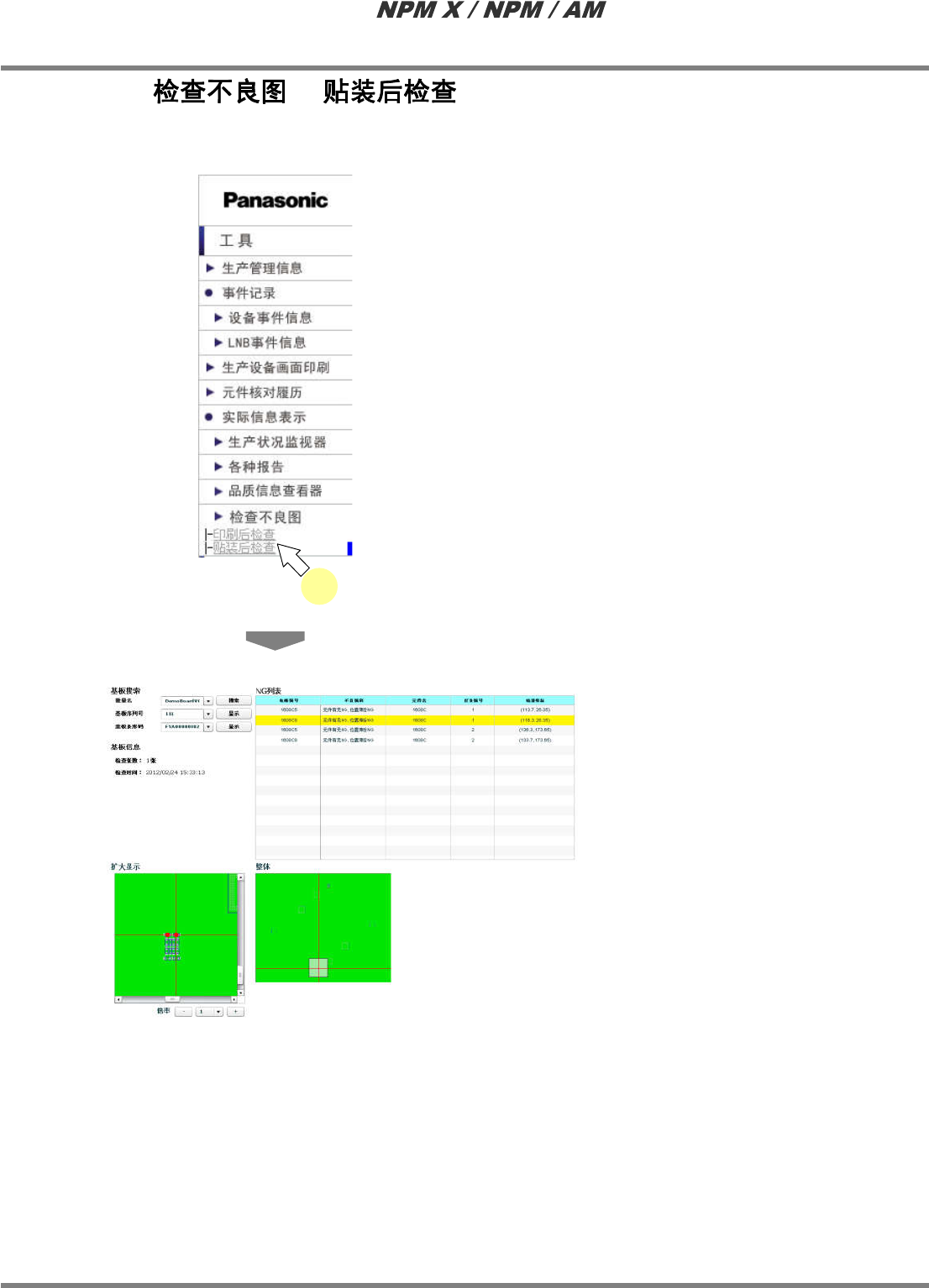 贴装后检查不良图画面