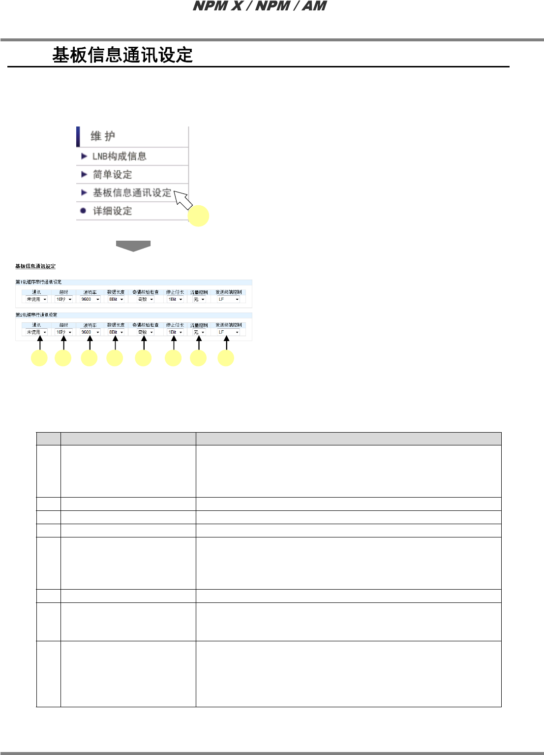 基板信息通讯设定项目