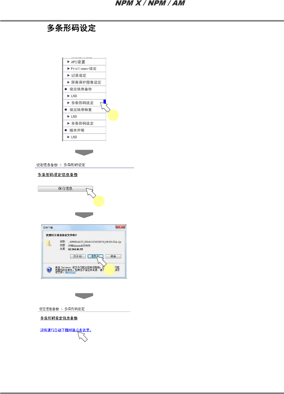 LNB 4.6 设定信息恢复 Page 4-46 EJM5DC-MB-04L-08 4.6 4.6.1 LNB 进行 LNB 设定信息的读入。 指定所备份的 LNB 设定信息,即可反映该设定 。 1 在菜单中选择 ‘ 设定信息恢复 ’ 的 ‘LNB’ 。 · 显示出 <LNB 设定信息恢复 > 画面。 2 点击 [ 浏览 ] 指定 LNB 设定信息文件。 · 将打开指定设定信息文 件的对话框,请指定设 定信息文件。 3 点击…