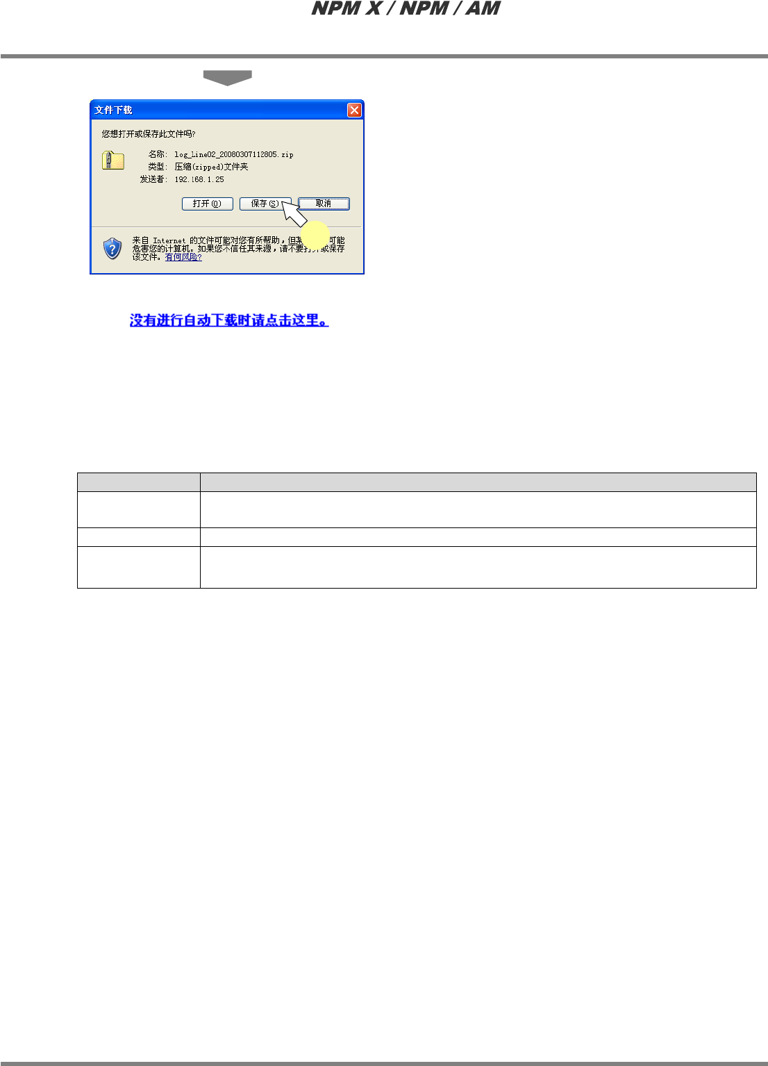 如果不显示出文件下载对话框,请点击在