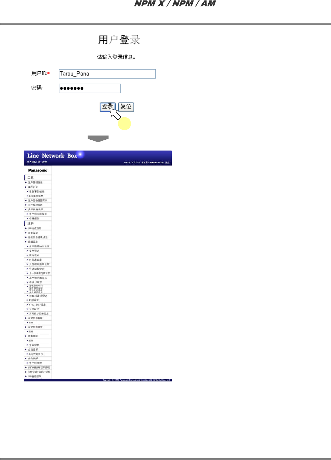 在顾客的终端机上进行工作。登录作业完毕后可进行与其权限相应的操作,直到结束。如果