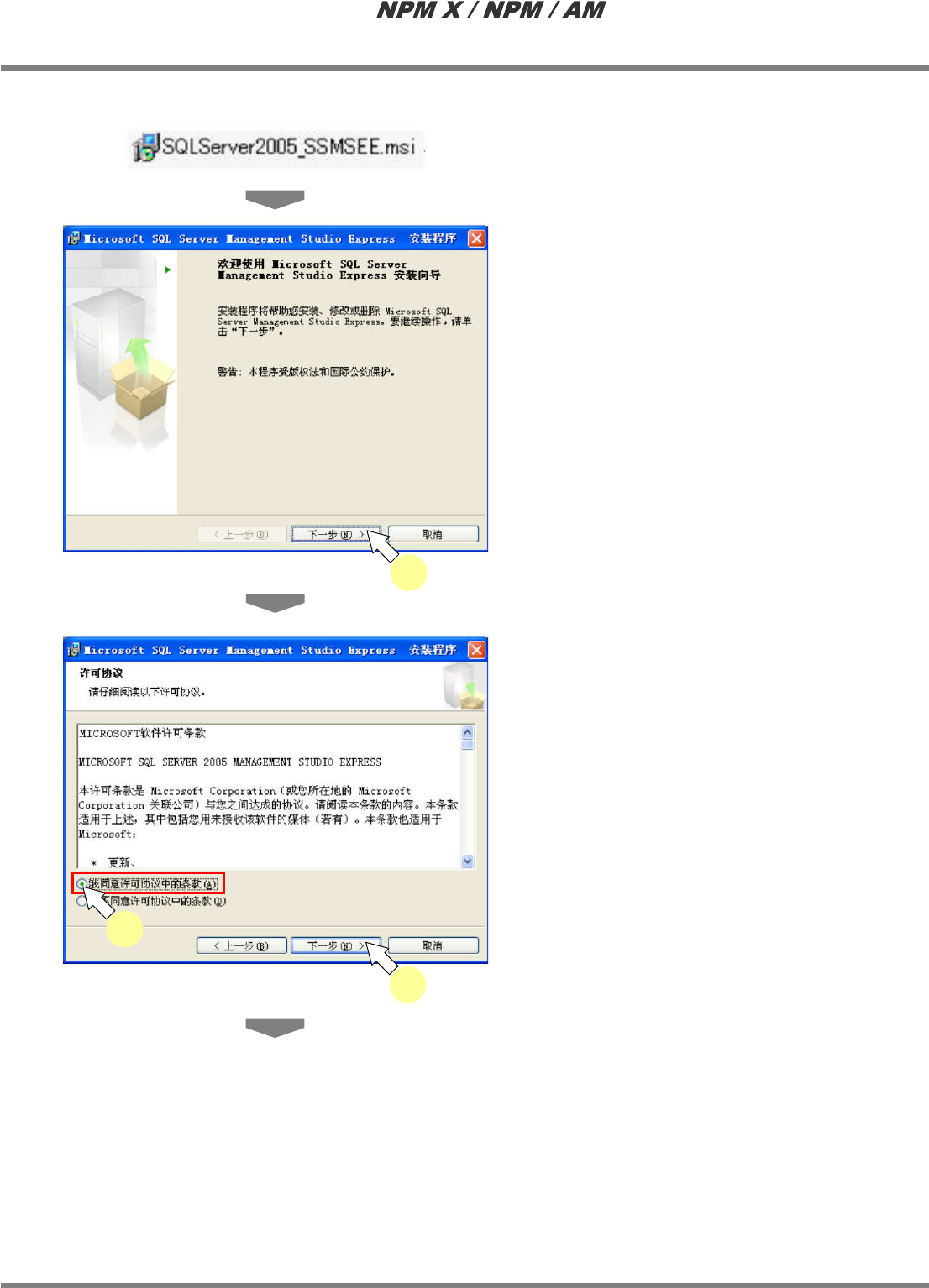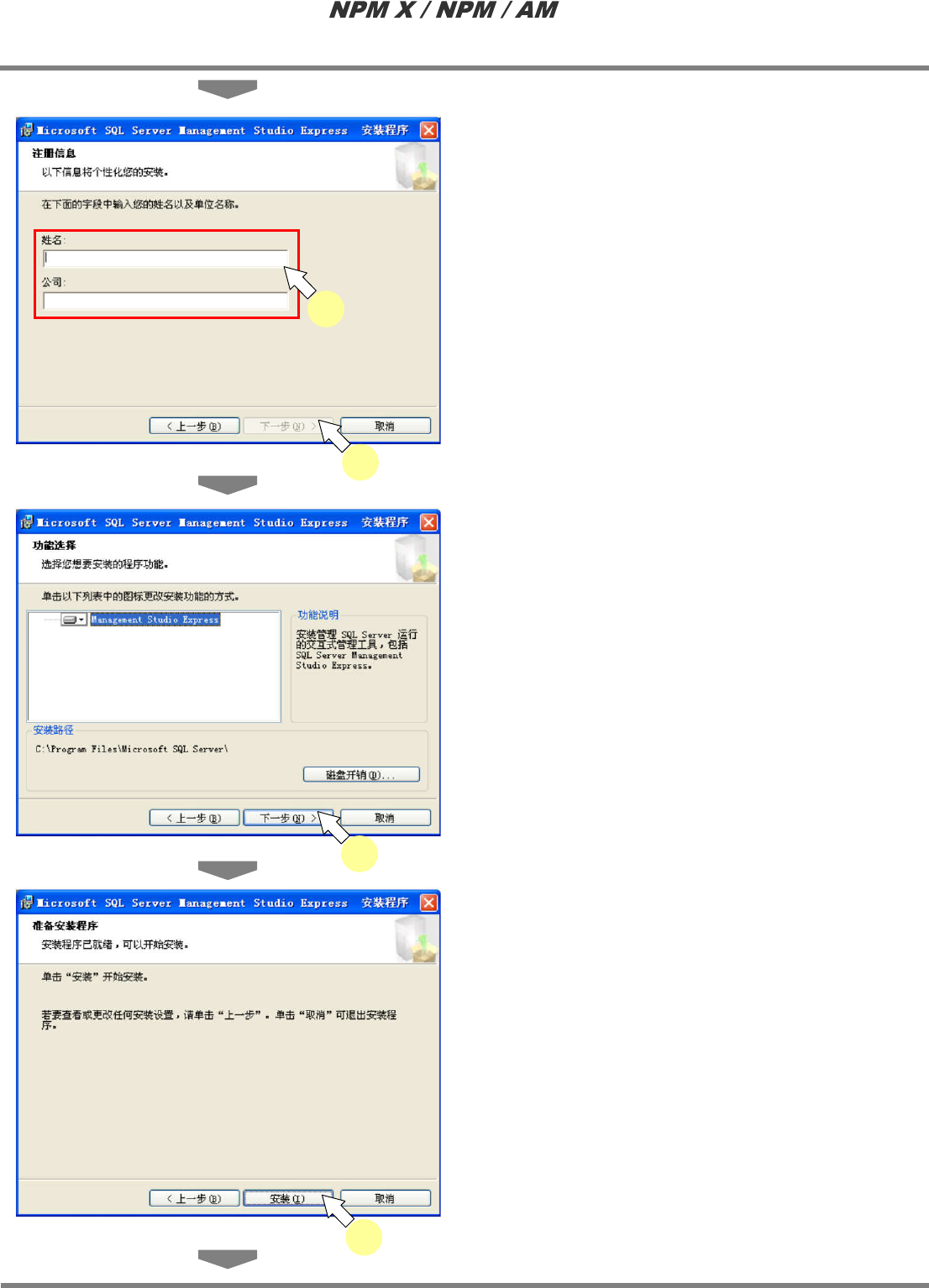 LNB 2.7 品质信息数据库的安装 Page 2-56 EJM5DC-MB-02L-10 4 输入名字和公司名后,点击 [ 下一步 ] 。 5 点击 [ 下一步 ] 。 6 点击 [ 安装 ] 。 2-5027 5 2-5028 6 2-5026 4 4