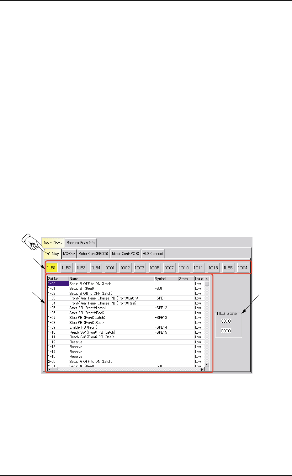 When the "I/O Diag." tab is pressed in the "Input Check" tab sheet, the