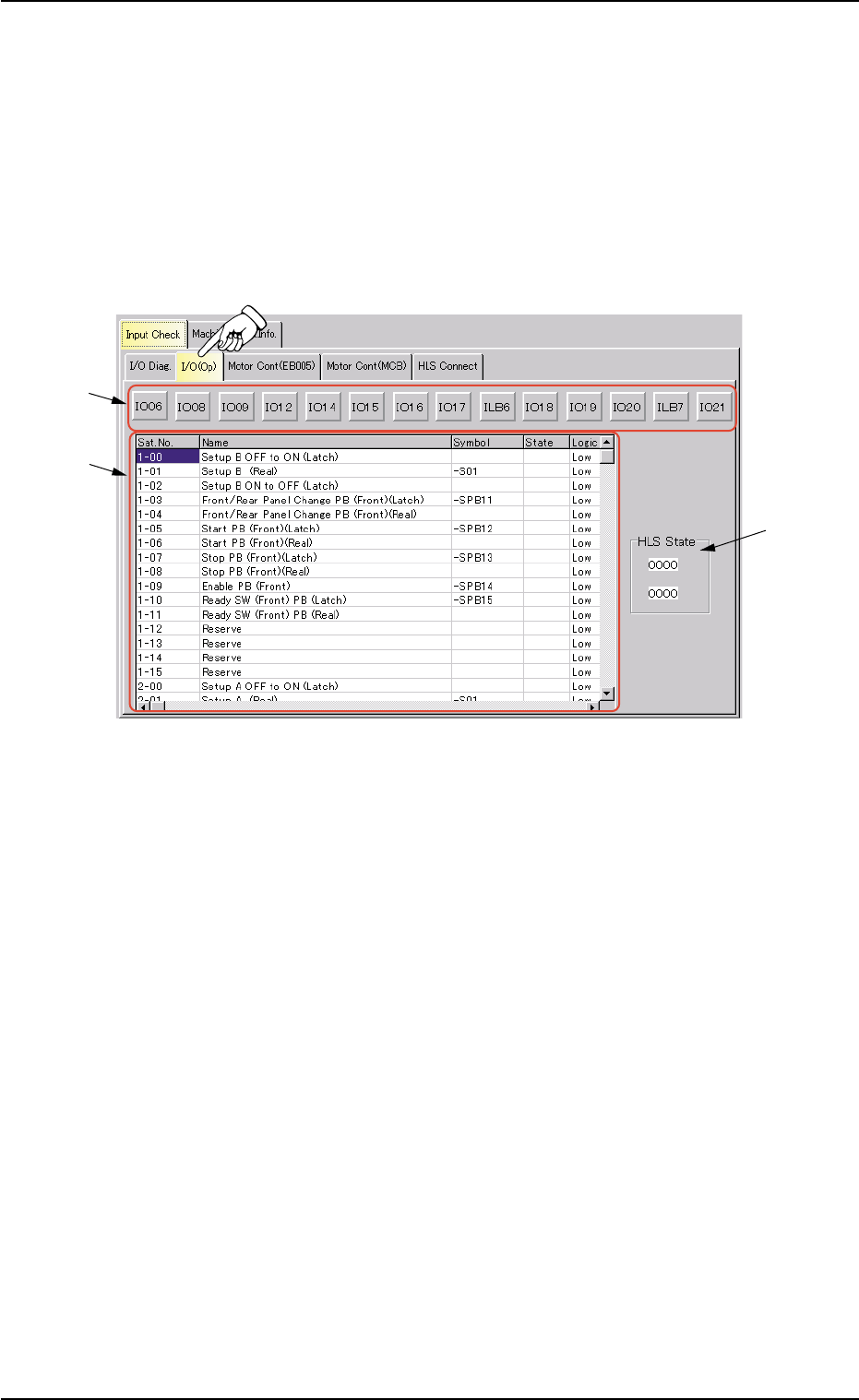 When the "I/O (Op)" tab is pressed in the "Input Check" tab sheet, the