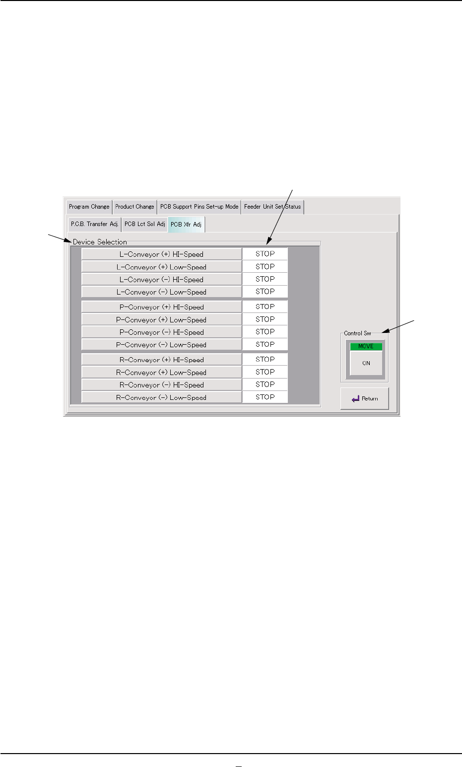 When the "PCB Xfr Adj" tab is pressed in the "Conveyor Adj" window,