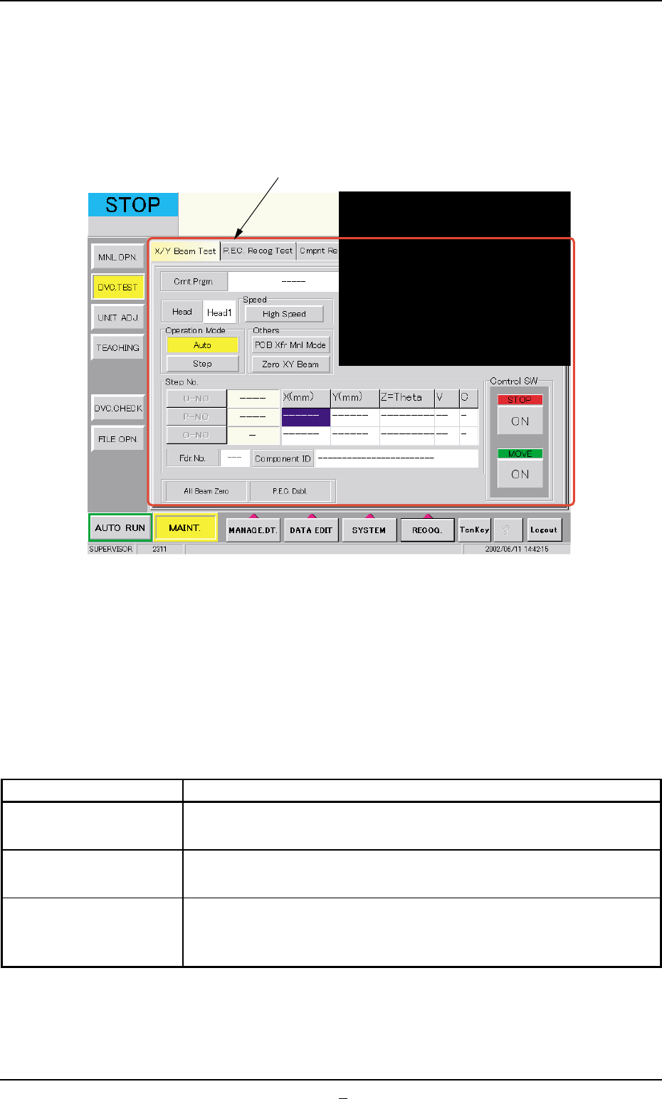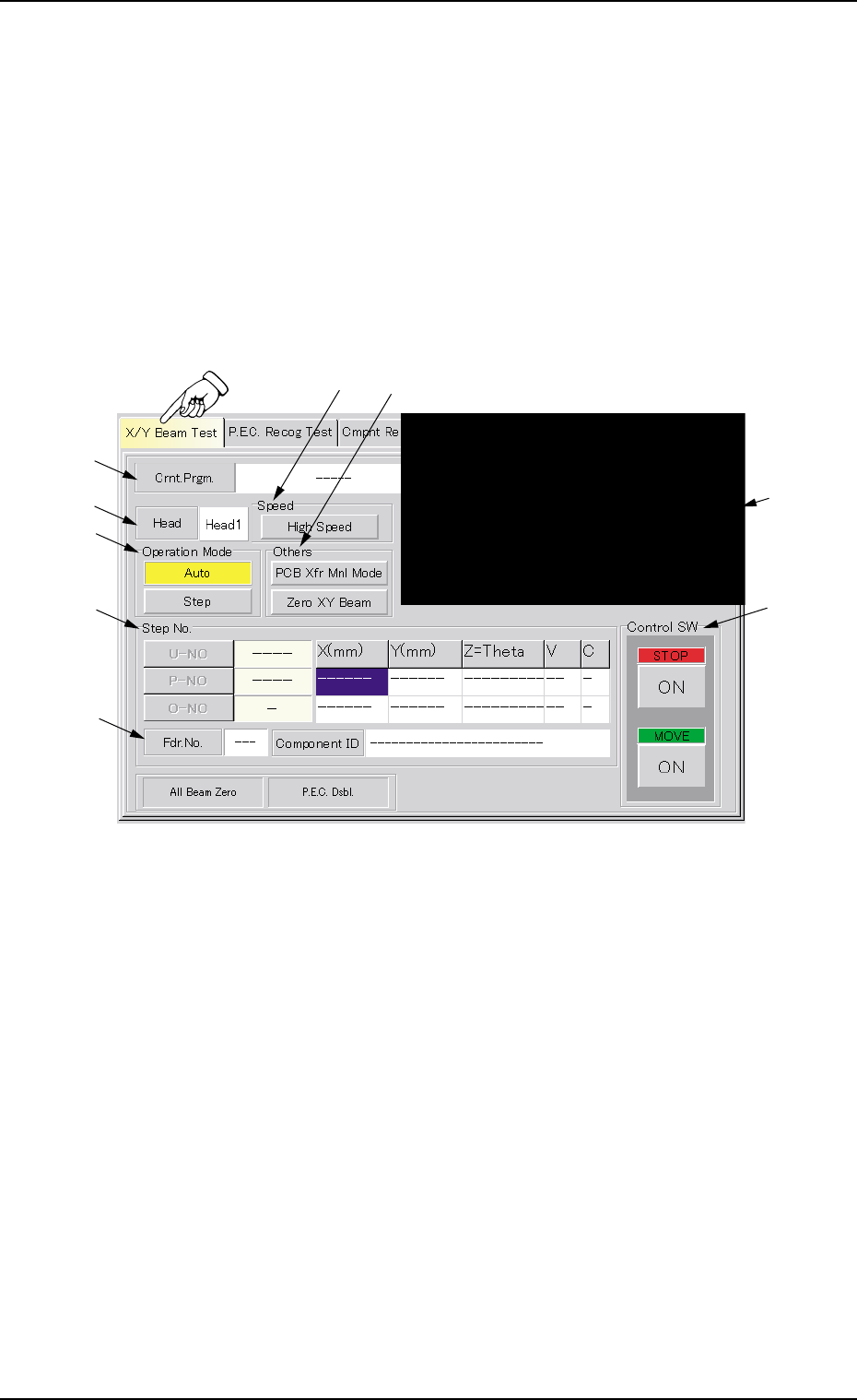 AHB01ESPP 3 . 1 "X/Y Beam T est" T ab The corresponding tab sheet enables the operator to check the X/Y beam movement according to the current pattern program. The P .E.C. recognition camera captures an image o…